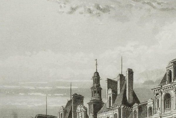 - Inscription: Signed below left „Rouargue del & sc.“ and right „Imp. F. Chardon ainé 30. r. Hautefeuille Paris.“ Below titled „PARIS (HÔTEL DE VILLE)“.
