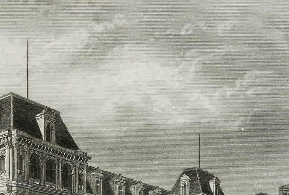 - Bezeichnung: Unterhalb links signiert mit „Rouargue del & sc.“ und rechts mit „Imp. F. Chardon ainé 30. r. Hautefeuille Paris.“ Darunter betitelt mit „PARIS (HÔTEL DE VILLE)“.