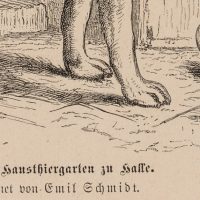 - Bezeichnung: Unten rechts in der Darstellung signiert mit “A. W [?] Aarland”. Unterhalb beschriftet mit “Der Tschuktschenhund im Hausthiergarten zu Halle. Nach dem Leben gezeichnet von Emil Schmidt.”.