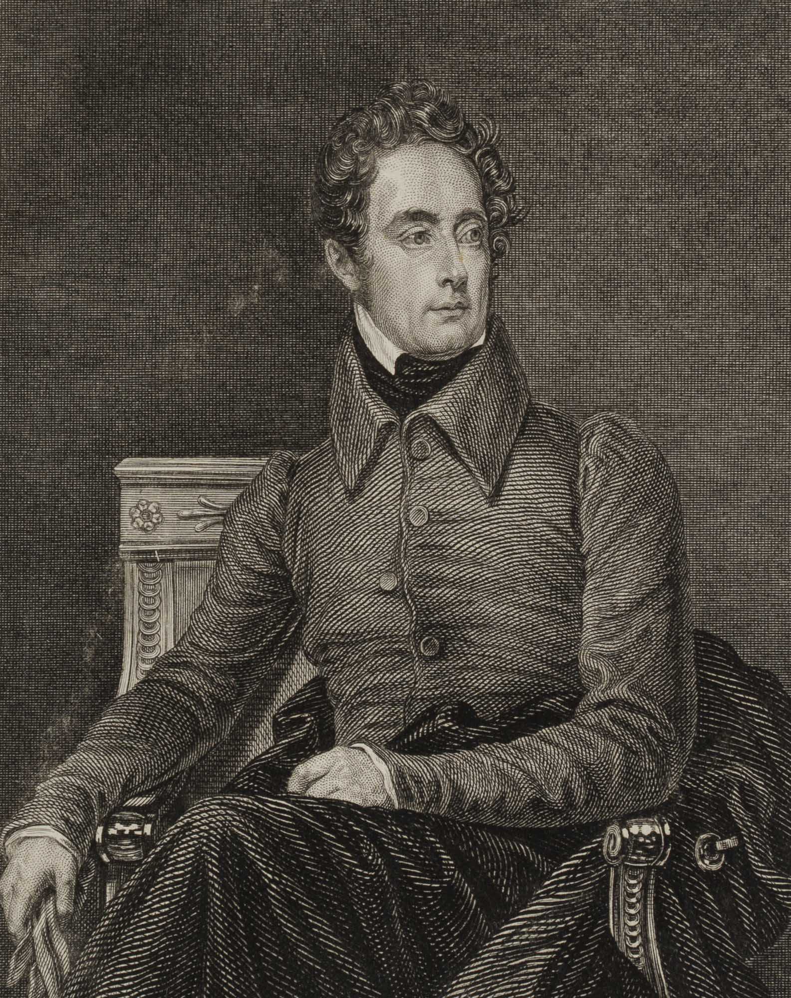 - Beschreibung: Kupferstich von Edouard Schuler, rechts unter der Darstellung signiert: “Ed. Schuler scp.”, mittig darunter bezeichnet “Alphonse de Lamartine”. Sehr schönes Dichterporträt. Mit locker übereinandergeschlagenen Beinen sitzt der junge Lamartine auf einem Stuhl. Seinen rechten Arm hat er auf die reich verzierte Armlehne gelegt. Als wäre er soeben erst eingetreten, liegt sein dunkler Mantel achtlos unter ihm auf dem Stuhl, seine Handschuhe hält er in der Hand. Die dunkle Jacke mit großem Kragen ist nachlässig geknöpft der mittlere Knopf wurde vergessen. Ernst blickt Lamartine über seine Schulter zur Seite. Alphonse de Lamartine ( Mâcon 1790 – Paris 1869) war ein französischer Politiker und Schriftsteller von Liebesromanen und Gedichten. Edouard Schuler ( Straßburg 1805 – Lichtenthal 1882) war Stahlstecher, Kupfestecher und Lithograph.