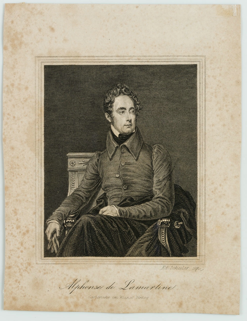 Eduard Schuler (1805 Straßburg – 1882 Lichtenthal), Porträt des französischen Schriftstellers und Politikers Alphonse de Lamartine (1790-1869), 19. Jahrhundert, Stahlstich