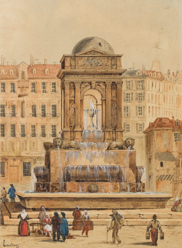 Eduard Sonntag (1813 Dresden – 1887 Bockenheim (Frankfurt am Main)), The Fontaine des Innocents, Paris, Fountain of the Innocents, 19th century, Watercolor