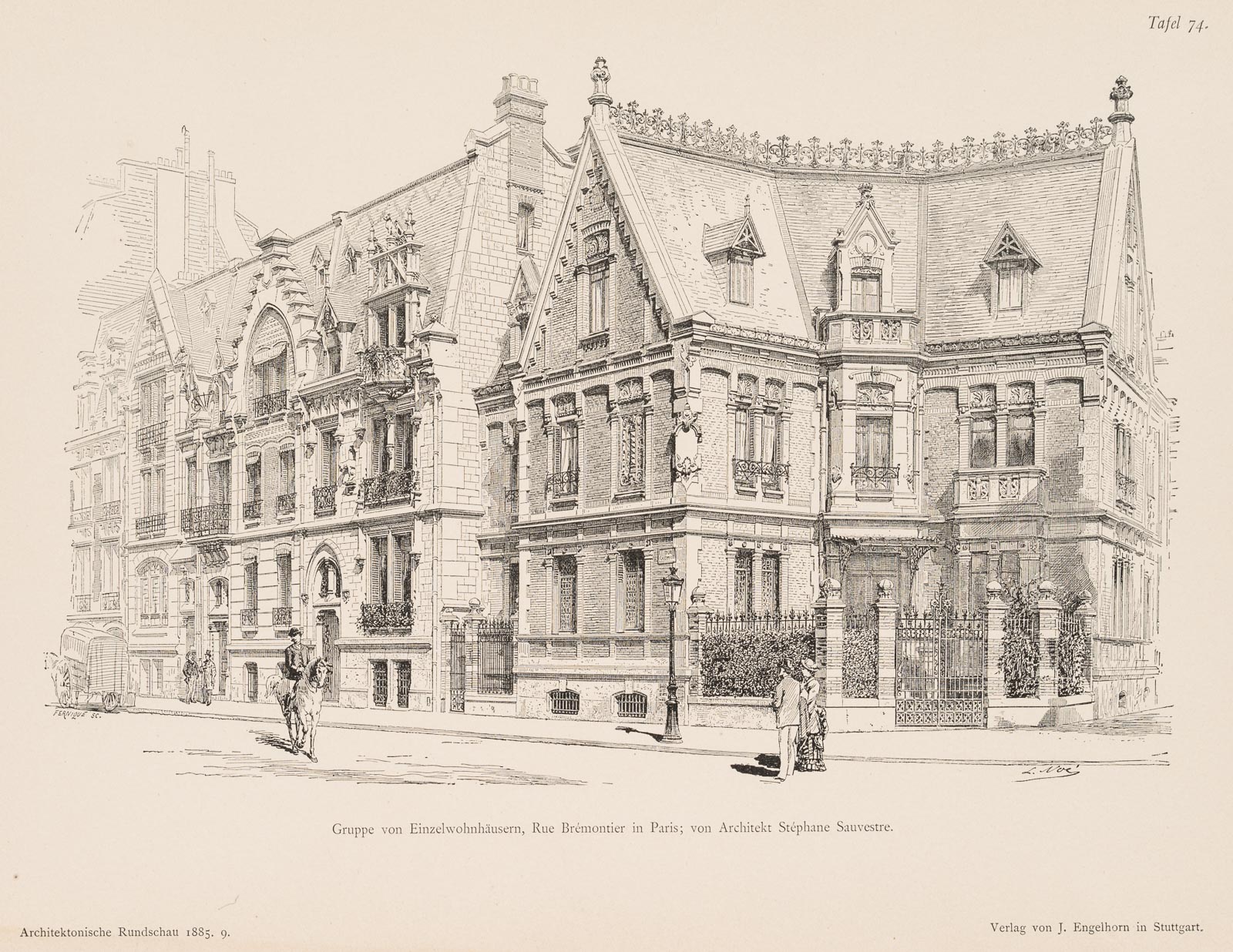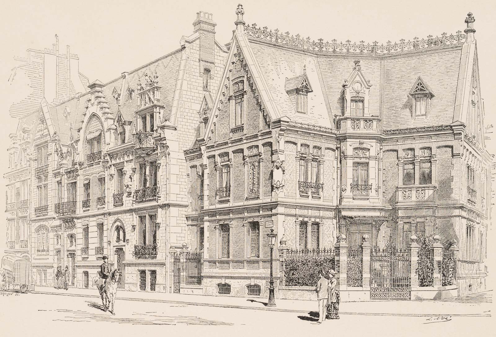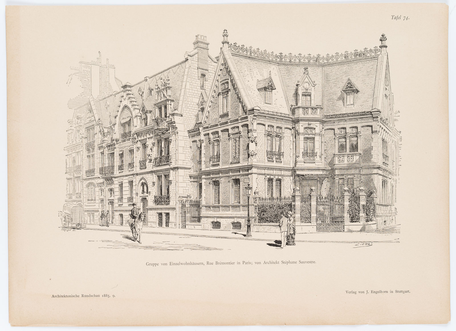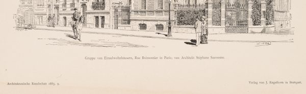 Eduard Lambert Stahl (1849 Frankfurt am Main – 1883 ), Rue Brémontier, Historistische Stadtvillen Paris, 1885, Lithographie