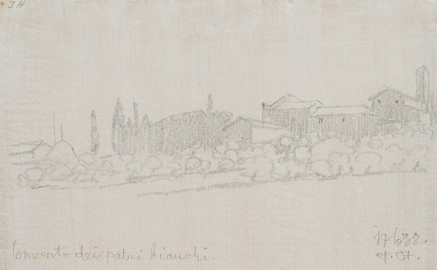 Edmund Steppes (1873 Burghausen – 1968 Deggendorf), Kloster in Italien, 1938, Bleistift