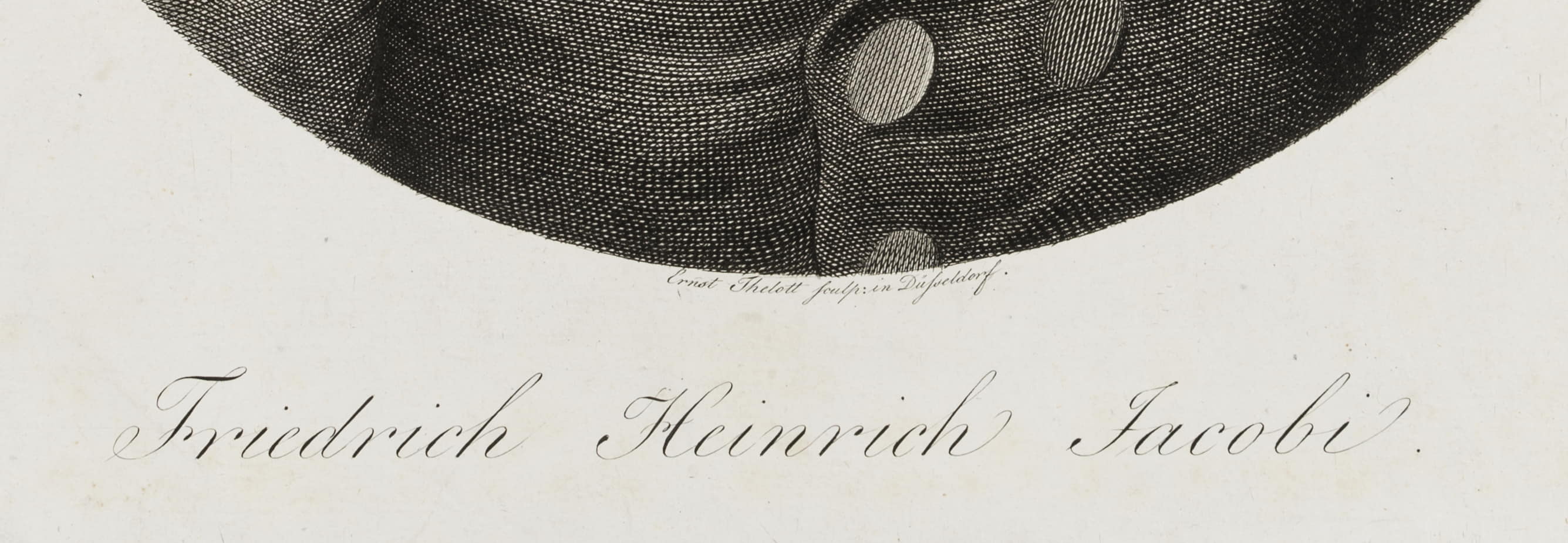 - Bezeichnung: Unten mittig im Druck signiert: “Ernst Thelott sculp: in Düsseldorf.”. Unten mittig im Druck bezeichnet: “Friedrich Heinrich Jacobi”.