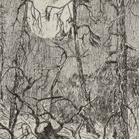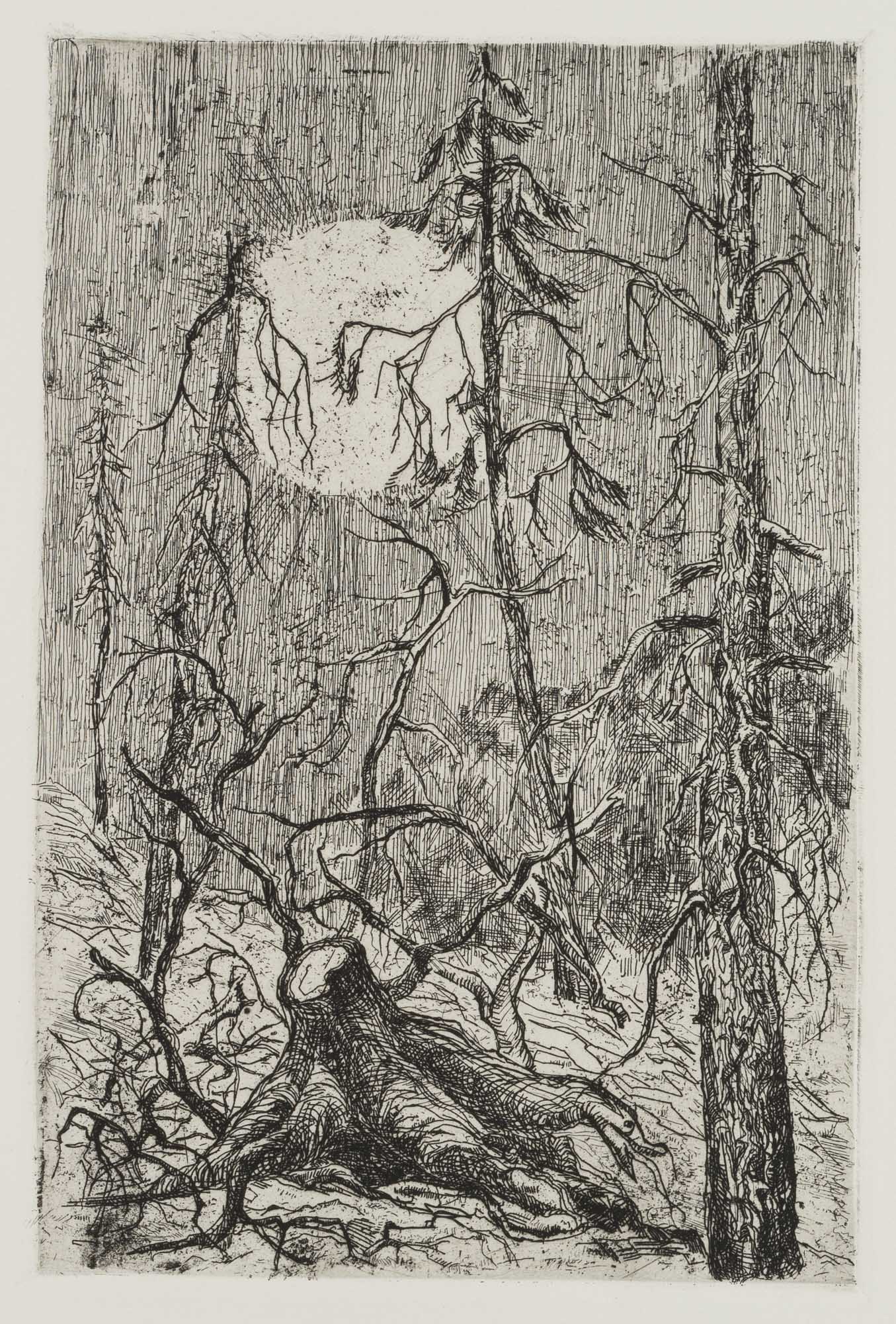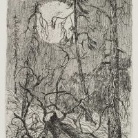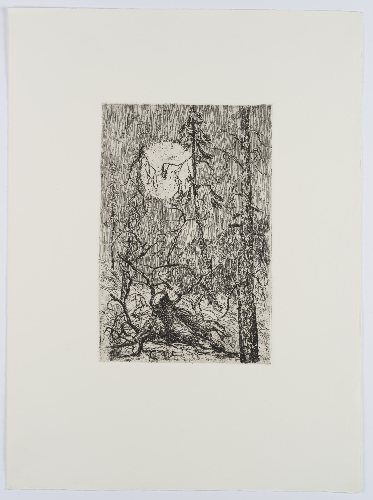 Emma Tichy-Bock (1894 – 1980 ), Tree stump before full moonrise, , Etching