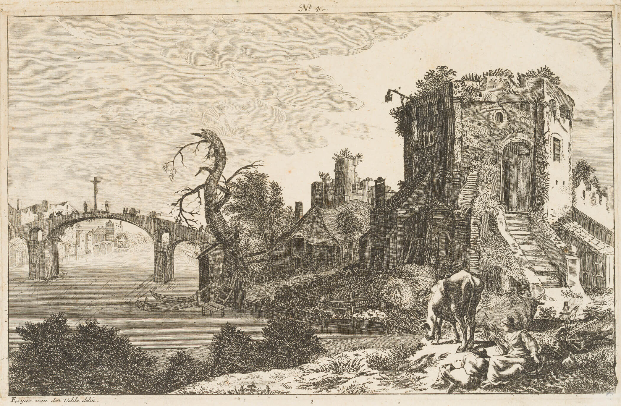 - Schlagworte: Ruine, Landschaft, Brücke, Landschaft, Niederlande, Kuh, Barock, Vor 1700