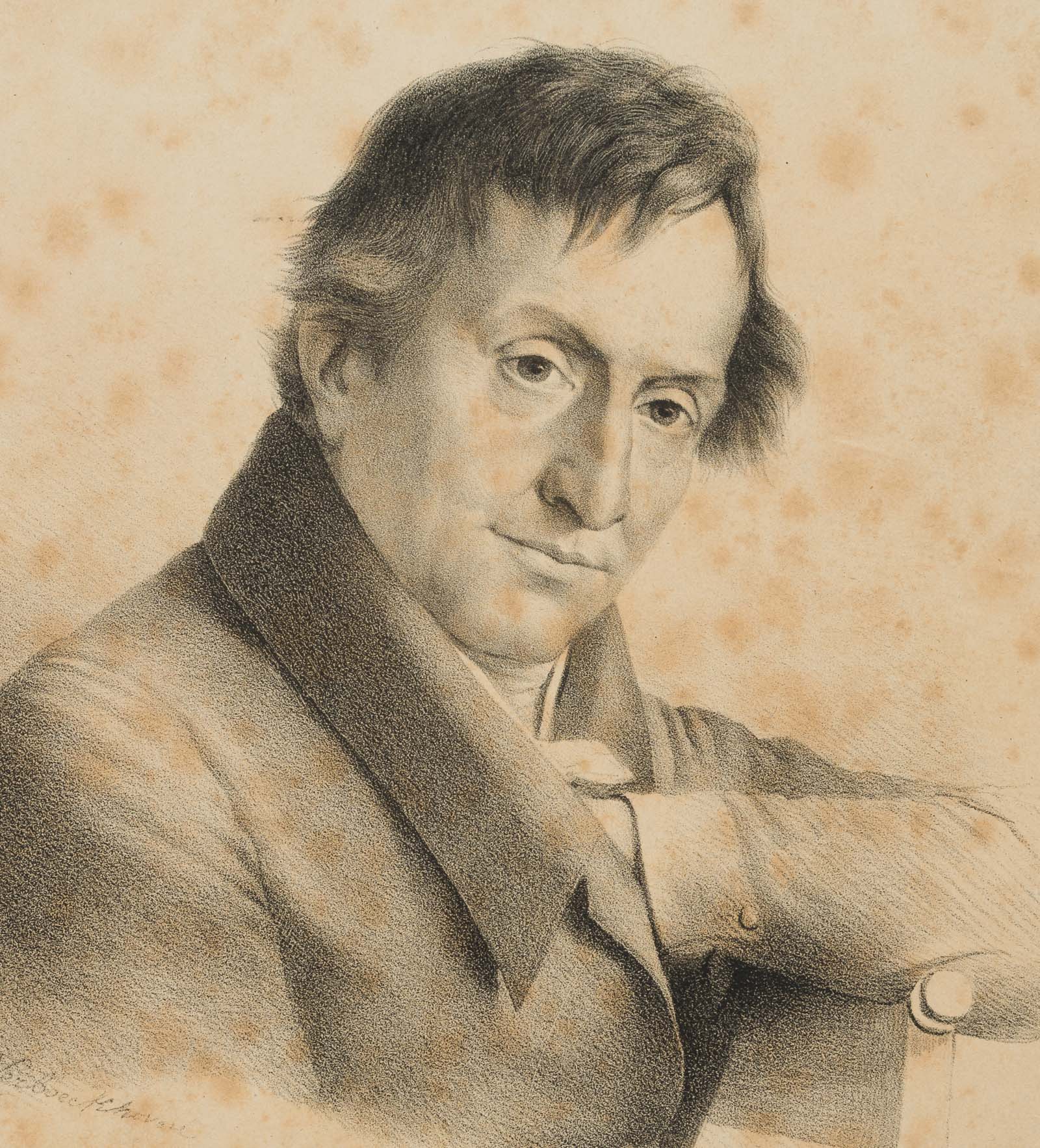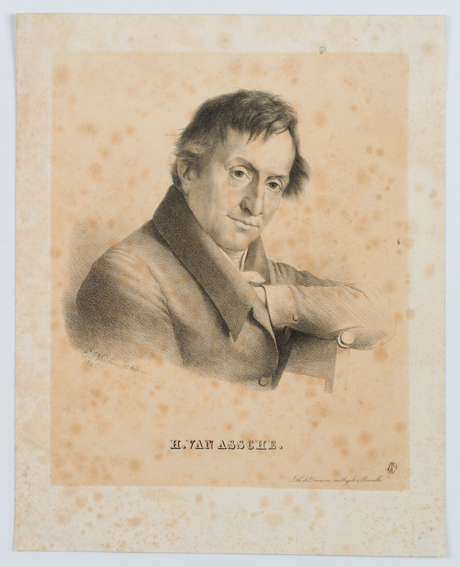 Eugène Joseph Verboeckhoven (1798 Warneton – 1881 Brussels), Portrait of the Belgian artist Henri van Assche (1774-1841), bust frontal with head inclined to the right., 1826, Lithography
