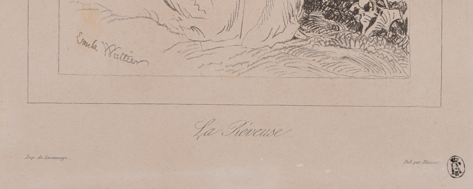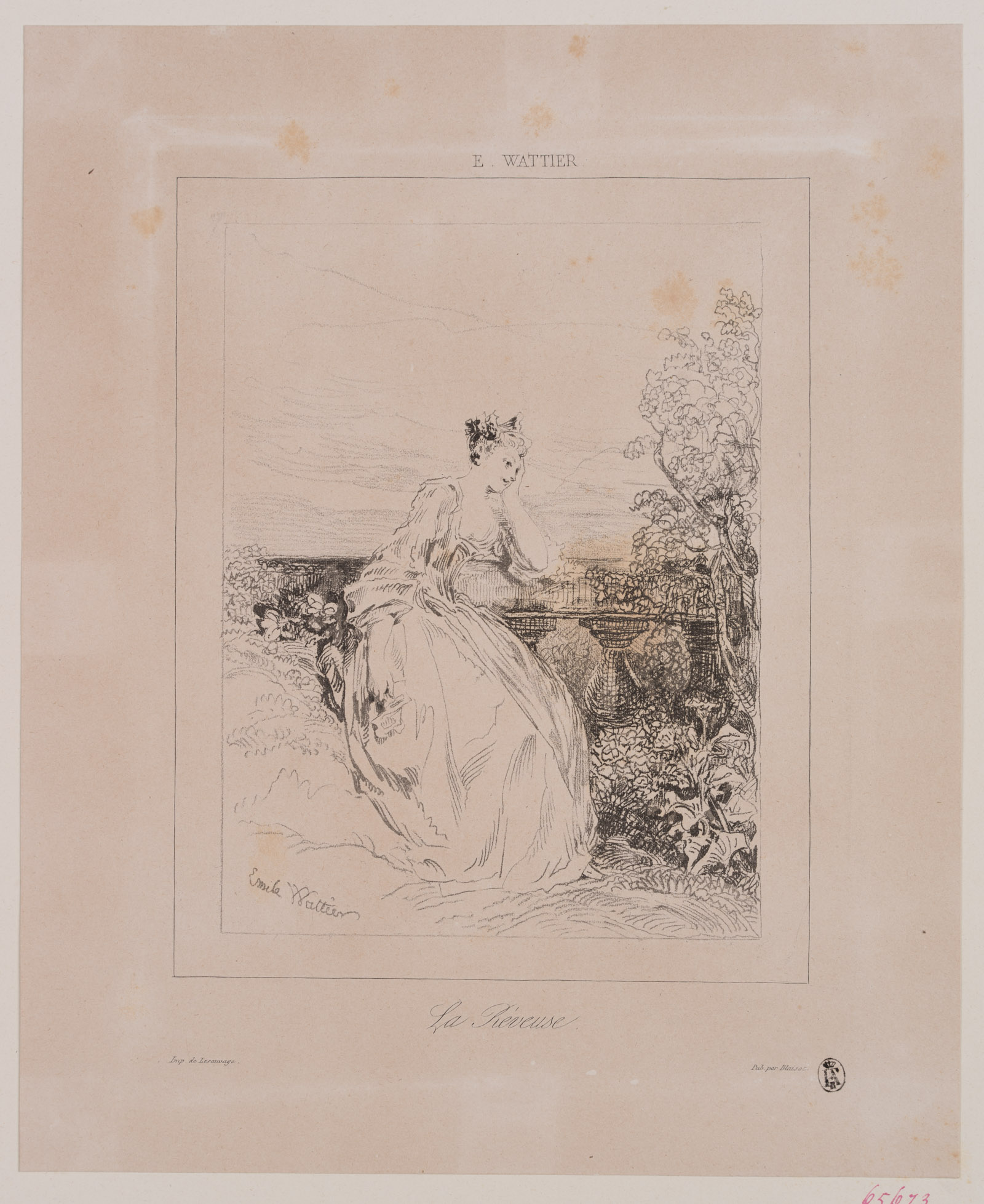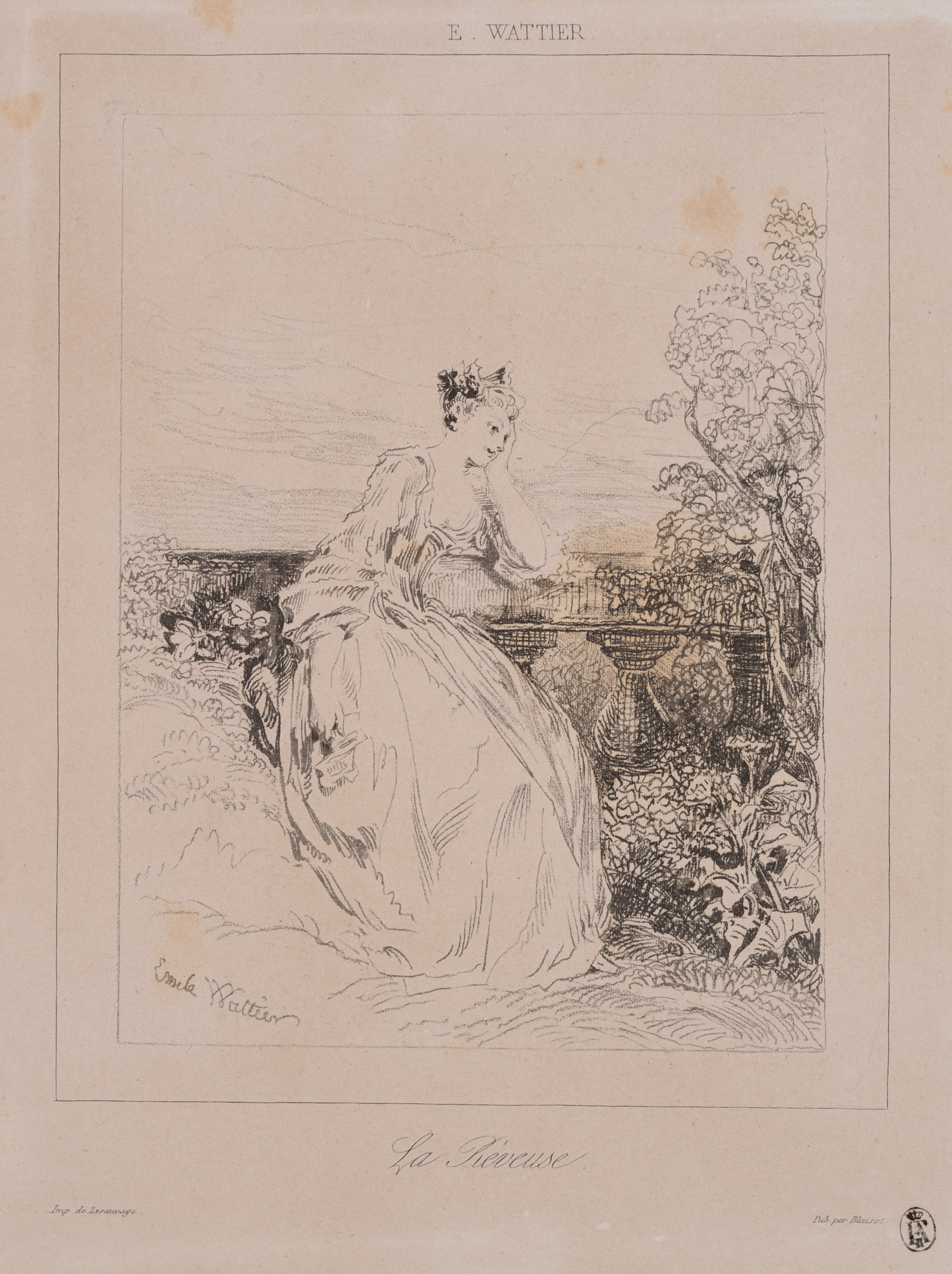 Emile Wattier (1800 Paris – 1868 ibid.), WATTIER, ‘La Rveuse’ Lady pondering over the letter she has received, Vernis mou, 19th century, Etching