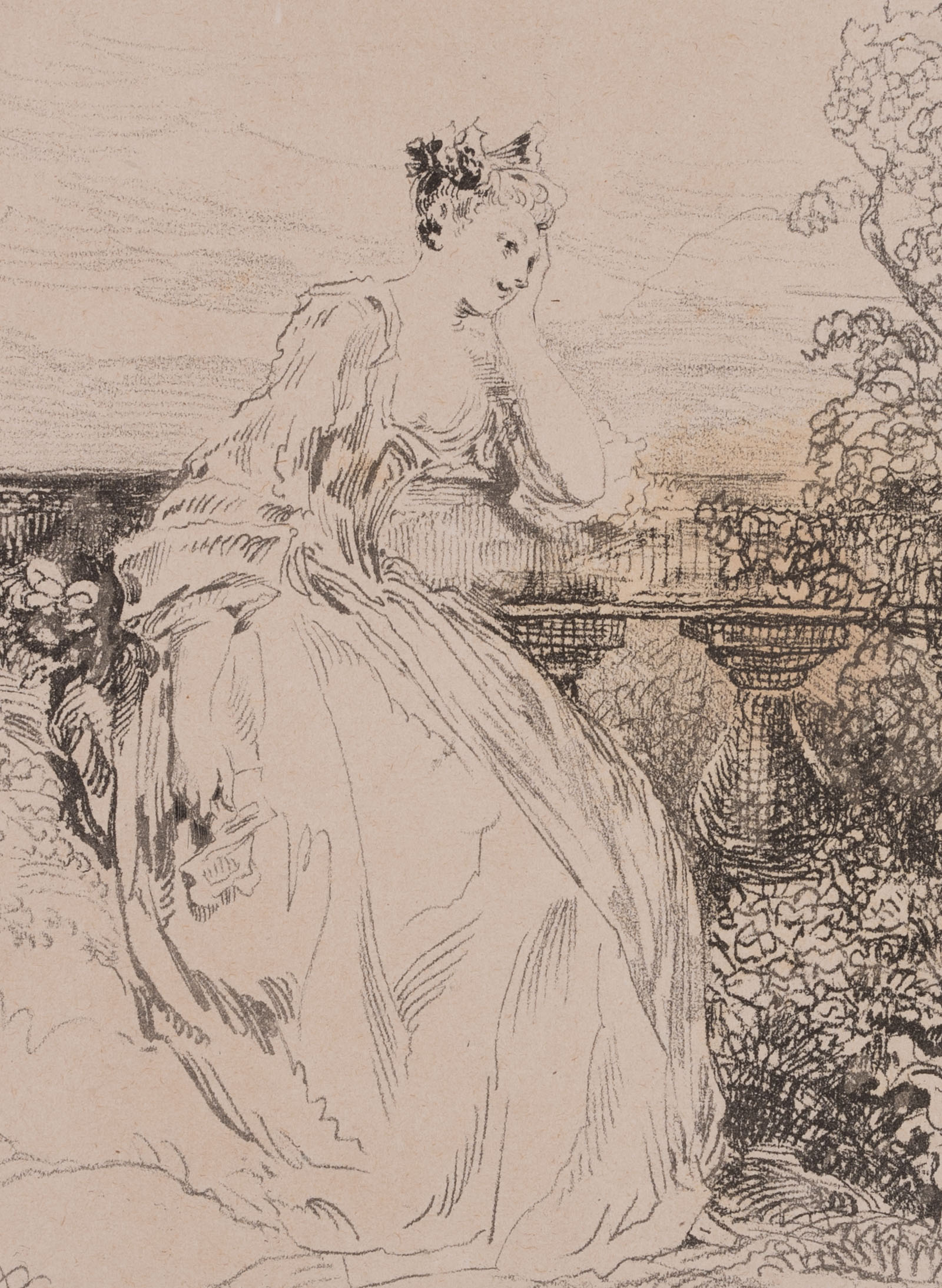 - Schlagworte: Brief, Briefleserin, Dame, elegante Dame, Balkon, Balustrade, Versunkenheit, Mode, Genre, Frankreich, Barock, 1800-1849