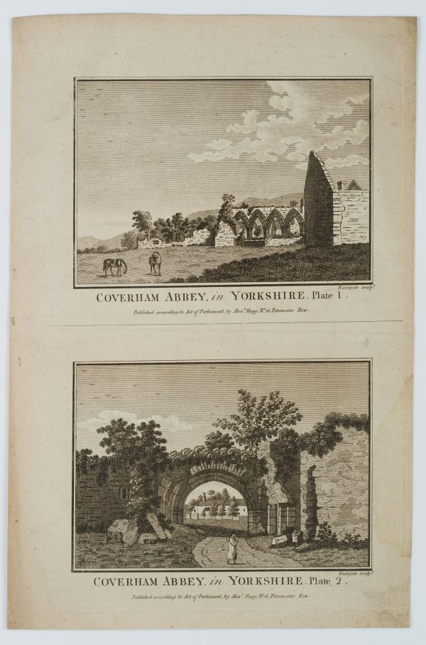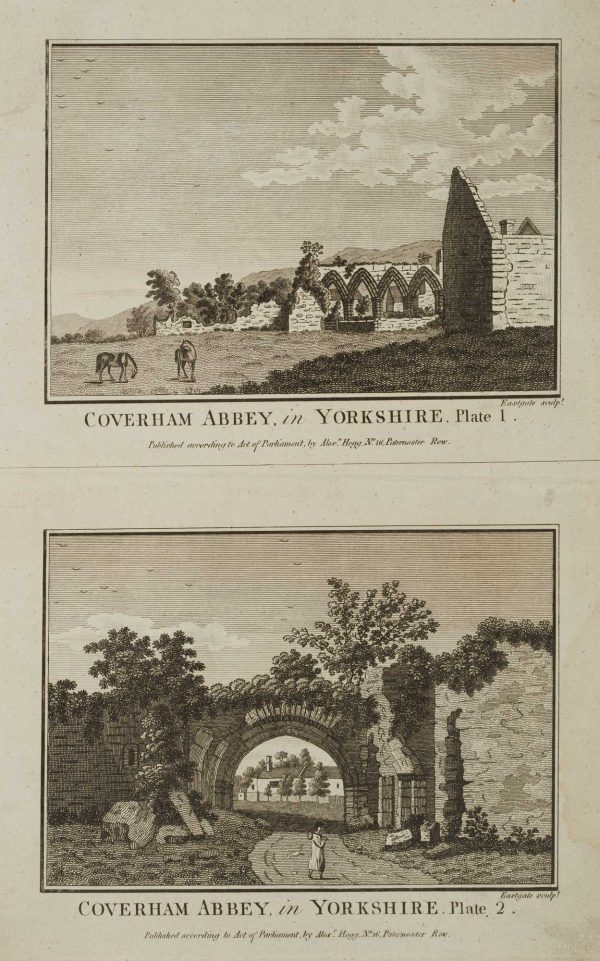 Eastgate (18th century), Two architectural and landscape depictions: “Coverham Abbey, in Yorkshire Plate 1”, “Coverham Abbey, in Yorkshire Plate 2”, 18th century, Etching