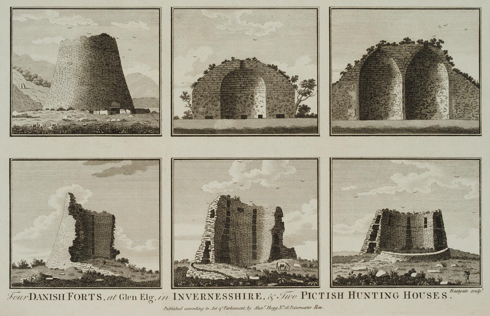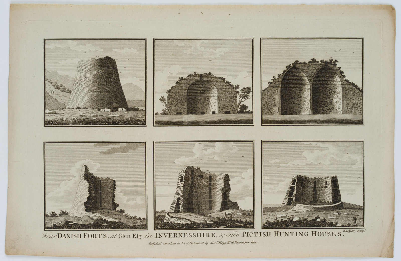 Eastgate (18th century), Six Landscape and Architectural Depictions: “Four Danish Forts at Glen Elg, in Invernesshire & Two Pictish Hunting Houses”, 18th century, Etching