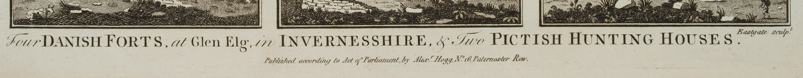 Eastgate (18. Jahrhundert), Sechs Landschafts- und Architekturdarstellungen: “Four Danish Forts at Glen Elg, in Invernesshire & Two Pictish Hunting Houses”, 18. Jahrhundert, Radierung