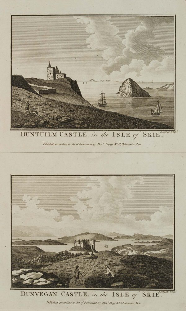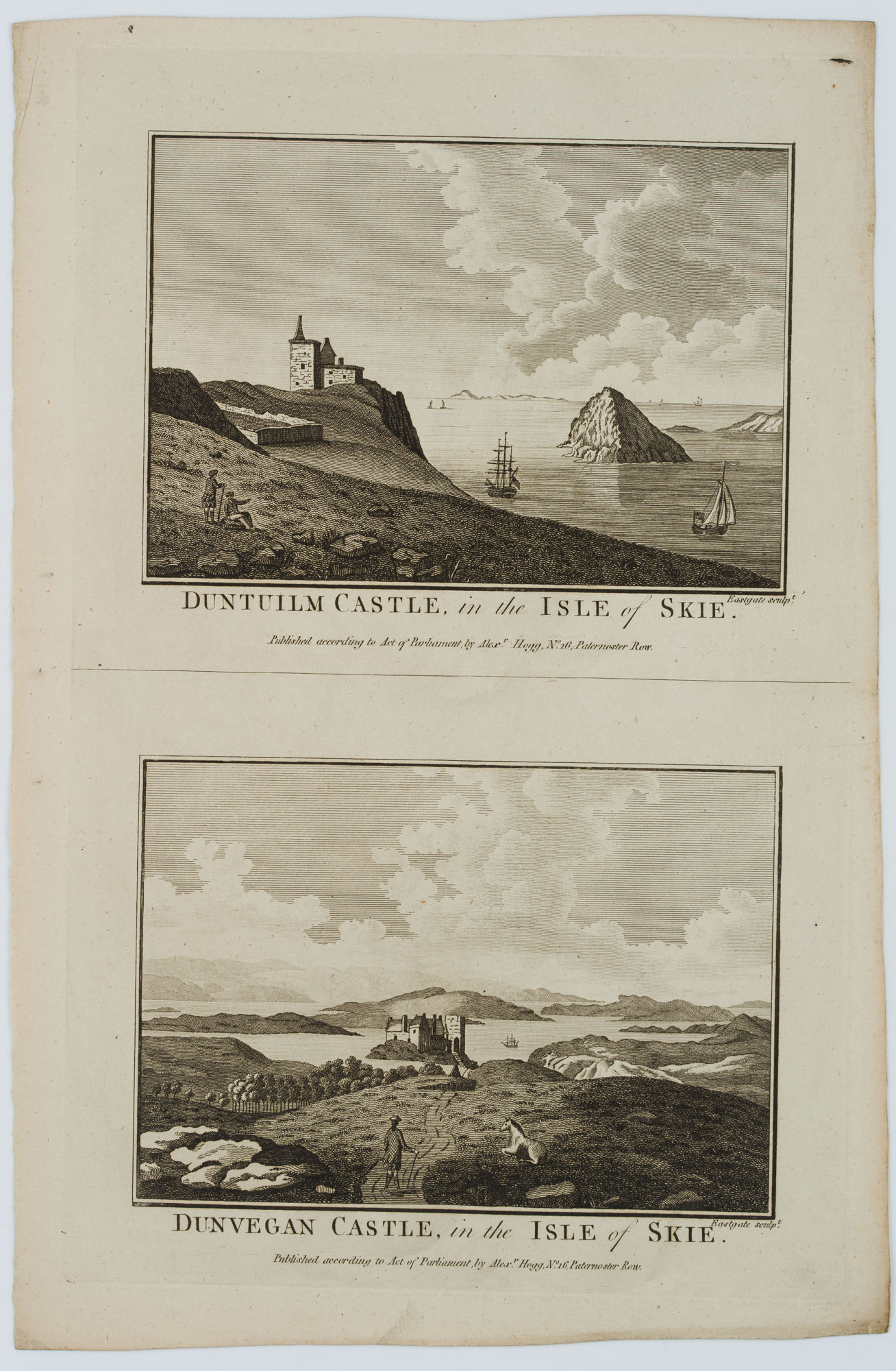 Eastgate (18th century), Two landscape and architectural depictions: “Duntuilm Castle, in the Isle of Skie”, “Dunvegan Castle, in the Isle of Skie”, 18th century, Etching
