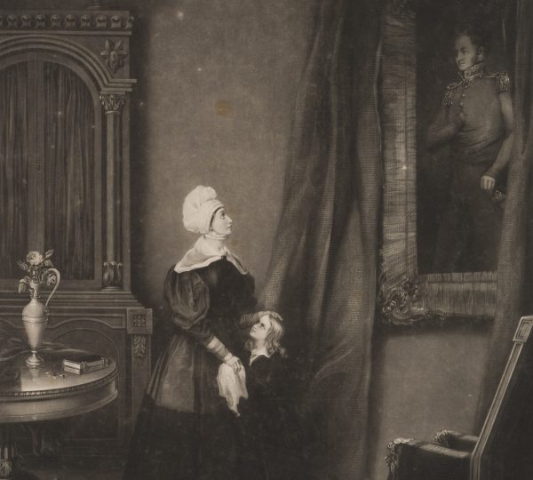 - Inscription: Unterhalb der Darstellung innerhalb der Druckplatte signiert, bezeichnet und mit Dedikation: “Engraved by J. Egan from a drawing by A. Penley / The Widow’s Treasures. To John Paton Esq. Of Cornbrook House Manchester / This Engraving from the original drawing in his possession is respectfully inscribed by The Publishers.” sowie mit Publikationszeile: “London published by B.B. King Monument Yard, Ackerman & Co. F.G: Moon threadneedle street and J.C. Grundy Manchester.”