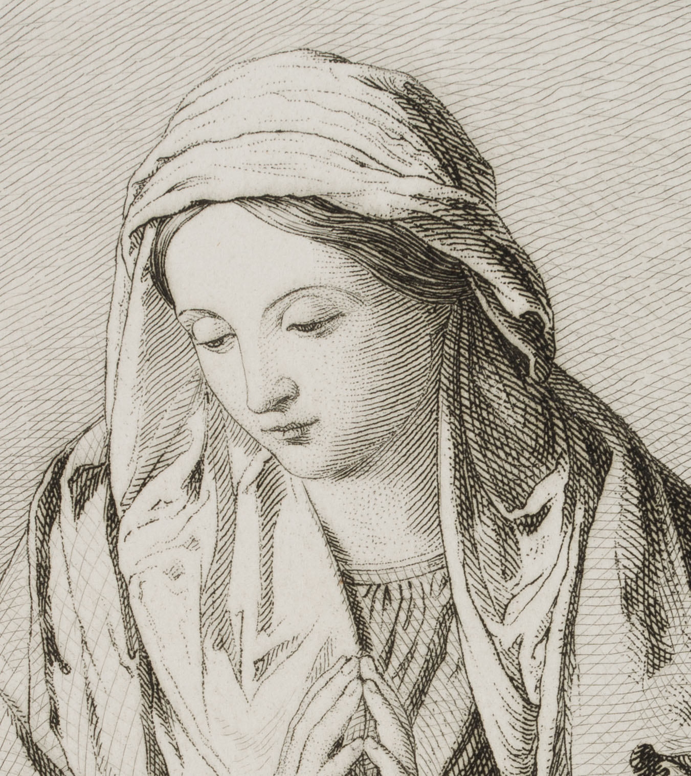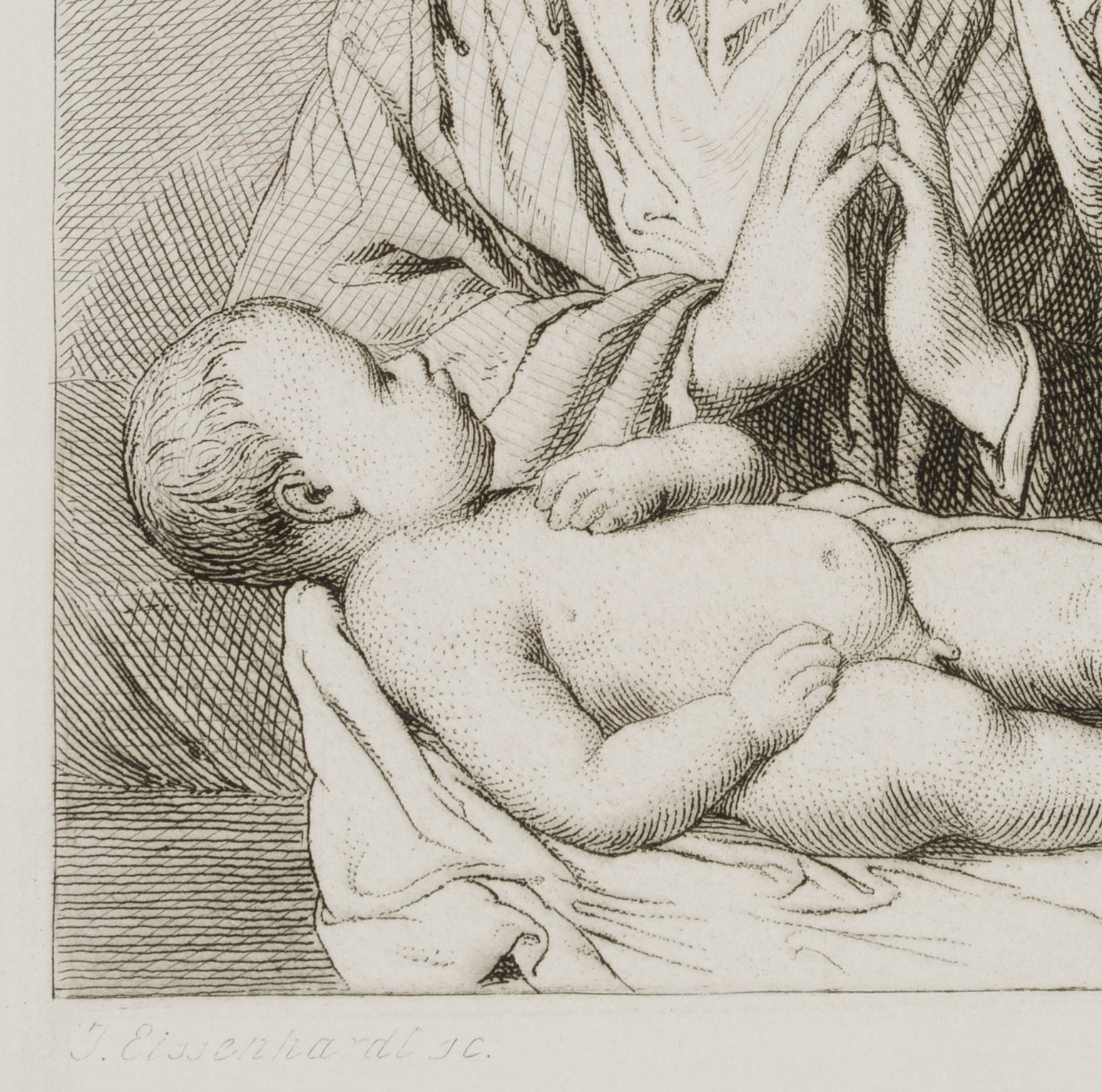 Johannes Eissenhardt (1824 Frankfurt on the Main – 1896 ibid.) after Sassoferrato: Giovanni Battista Salvi (1609 – 1609 ), Mary, adoring the child, 19th century, Etching