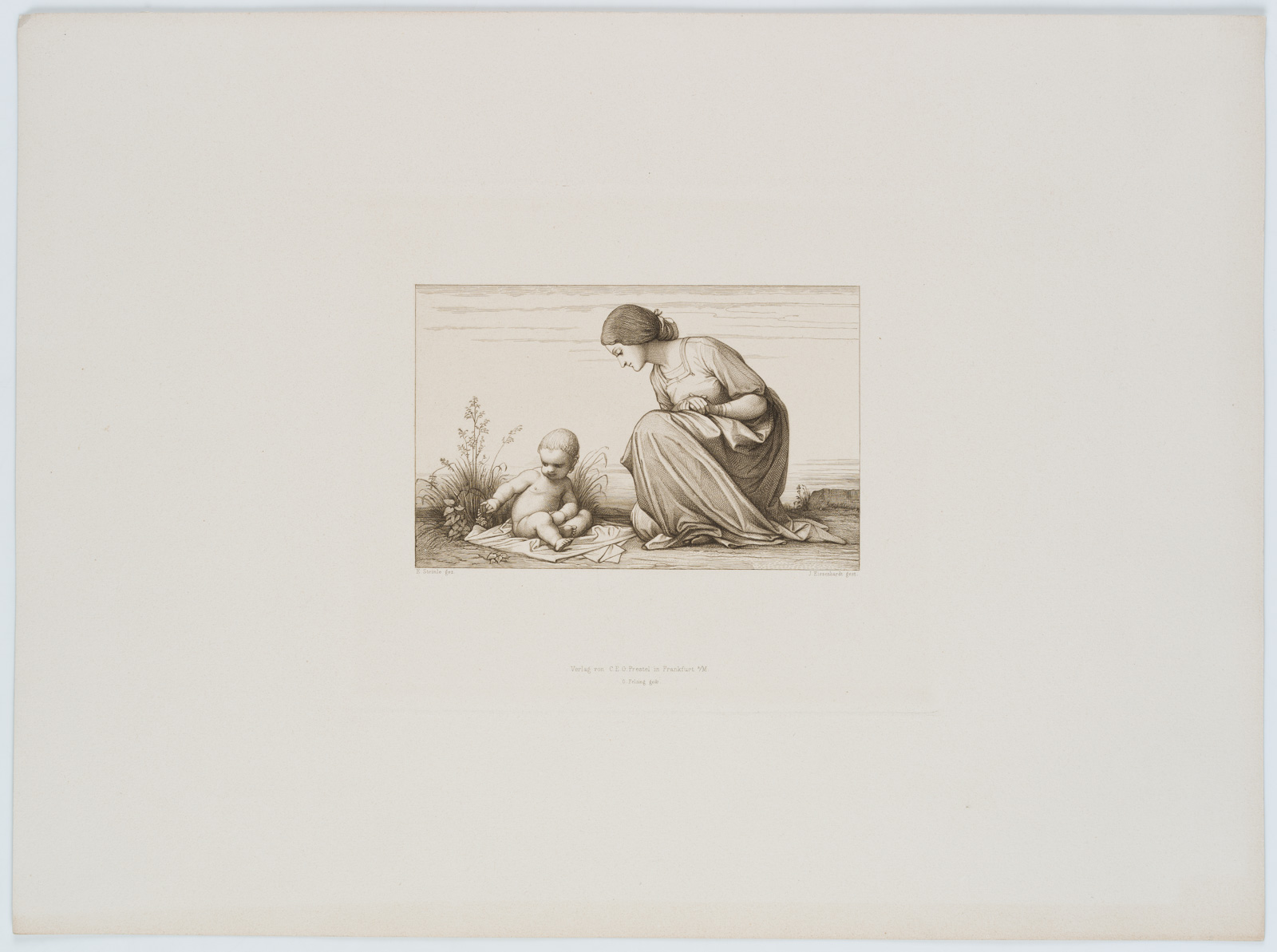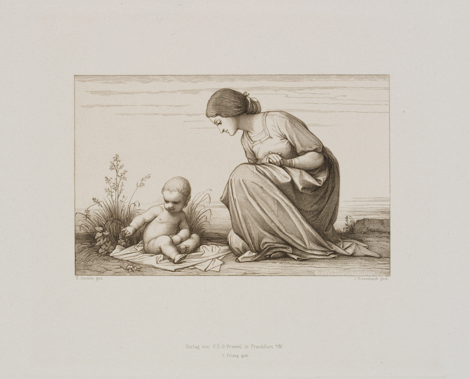 Johannes Eissenhardt (1824 Frankfurt on the Main – 1896 ibid.) after Edward Jakob von Steinle (1810 Vienna – 1886 Frankfurt on the Main), Mother with playing child, c. 1860, Steel engraving