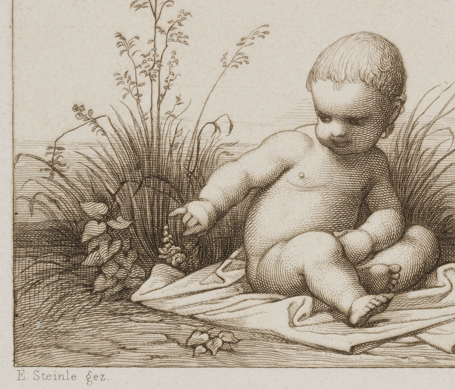 - Description: Signed below the depiction “E. Steinle gez. / J. Eissenhardt gest.”, inscribed below “Verlag von C.E.G. Prestel in Frankfurt /Main / O.Felsing gedr.”.