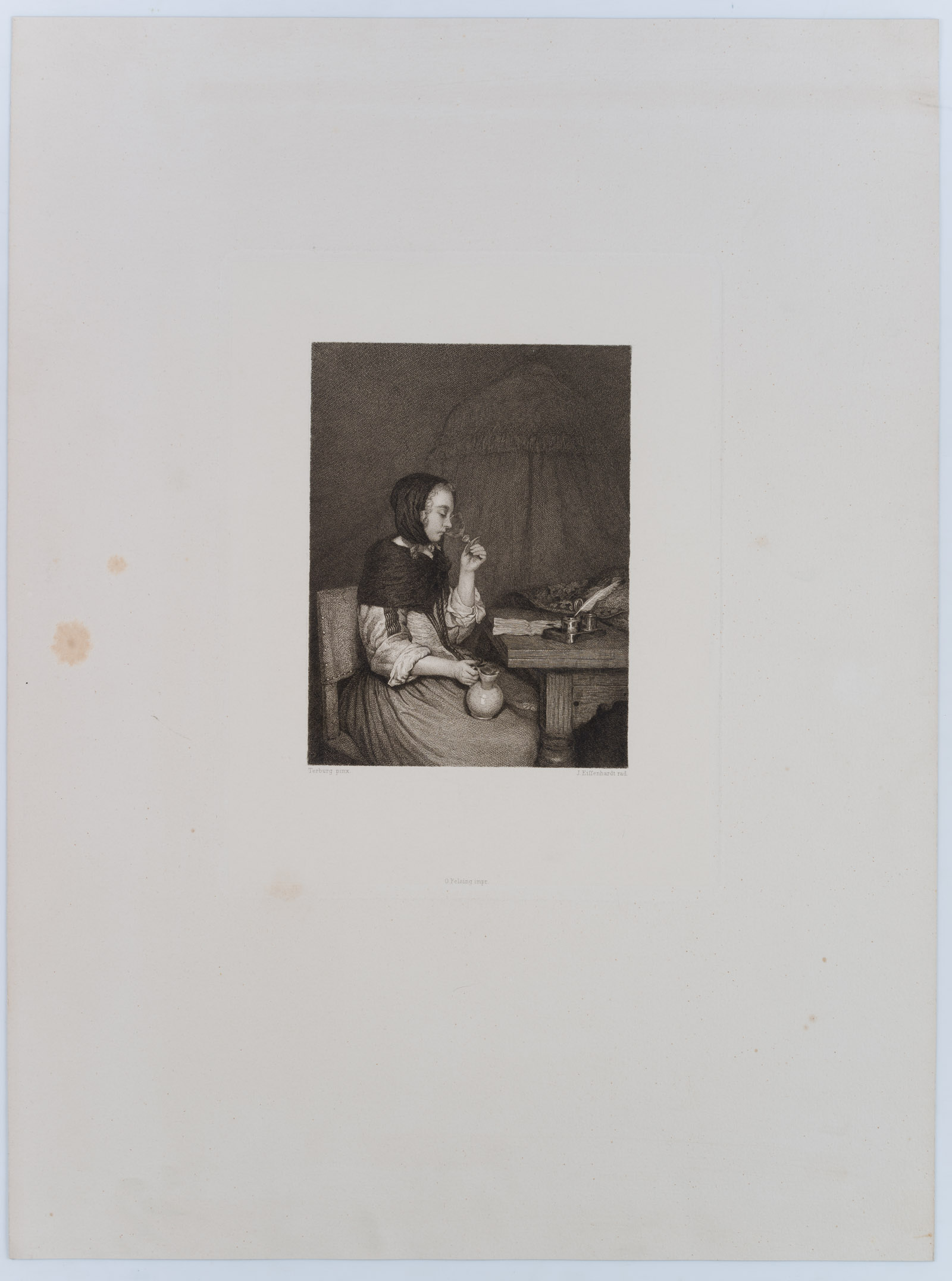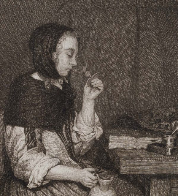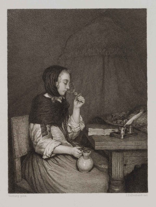 Johannes Eissenhardt (1824 Frankfurt am Main – 1896 ebd.) nach Gerhard Terburg (1608 – 1681 ), Die Weintrinkerin, um 1860, Radierung