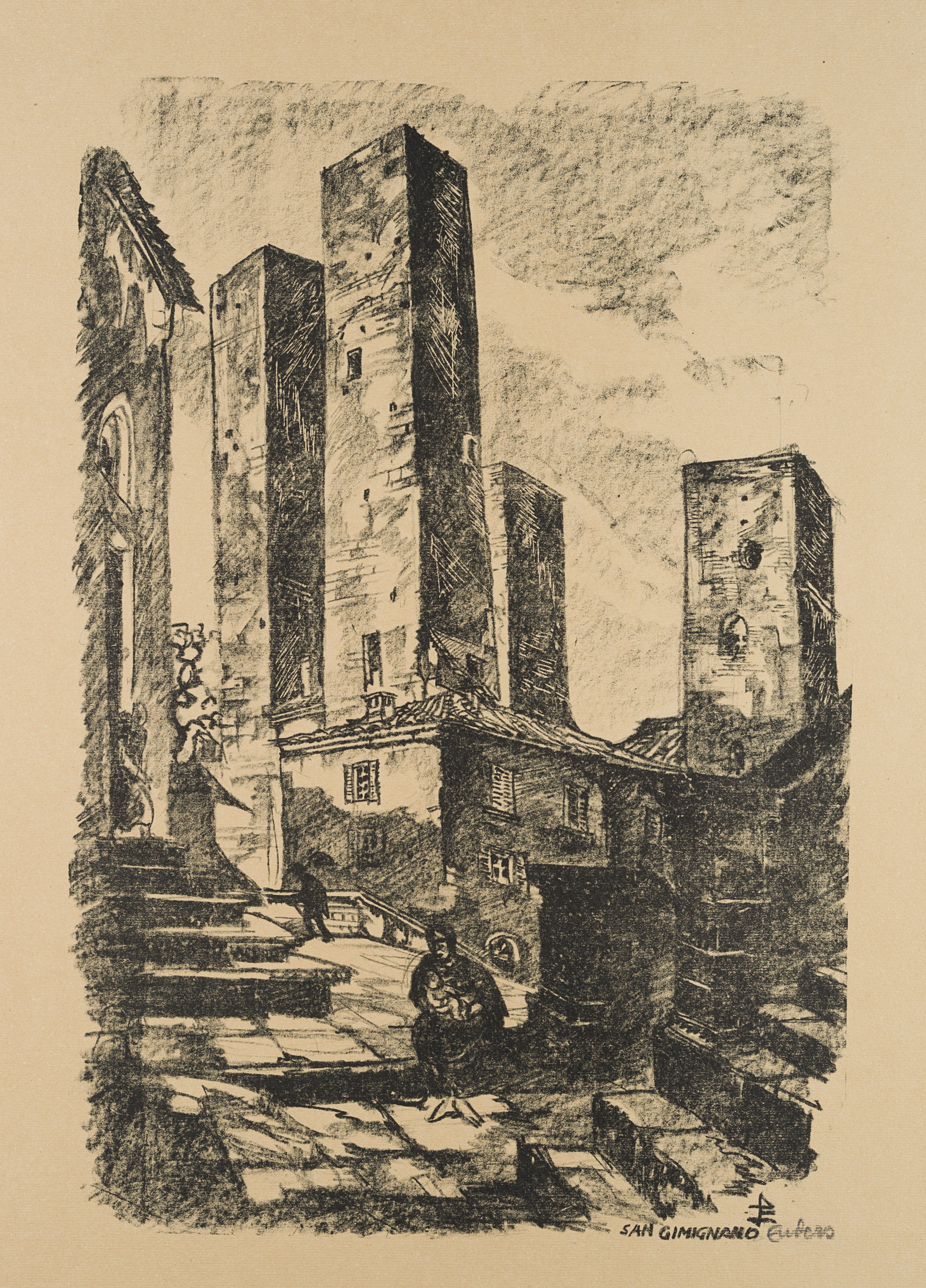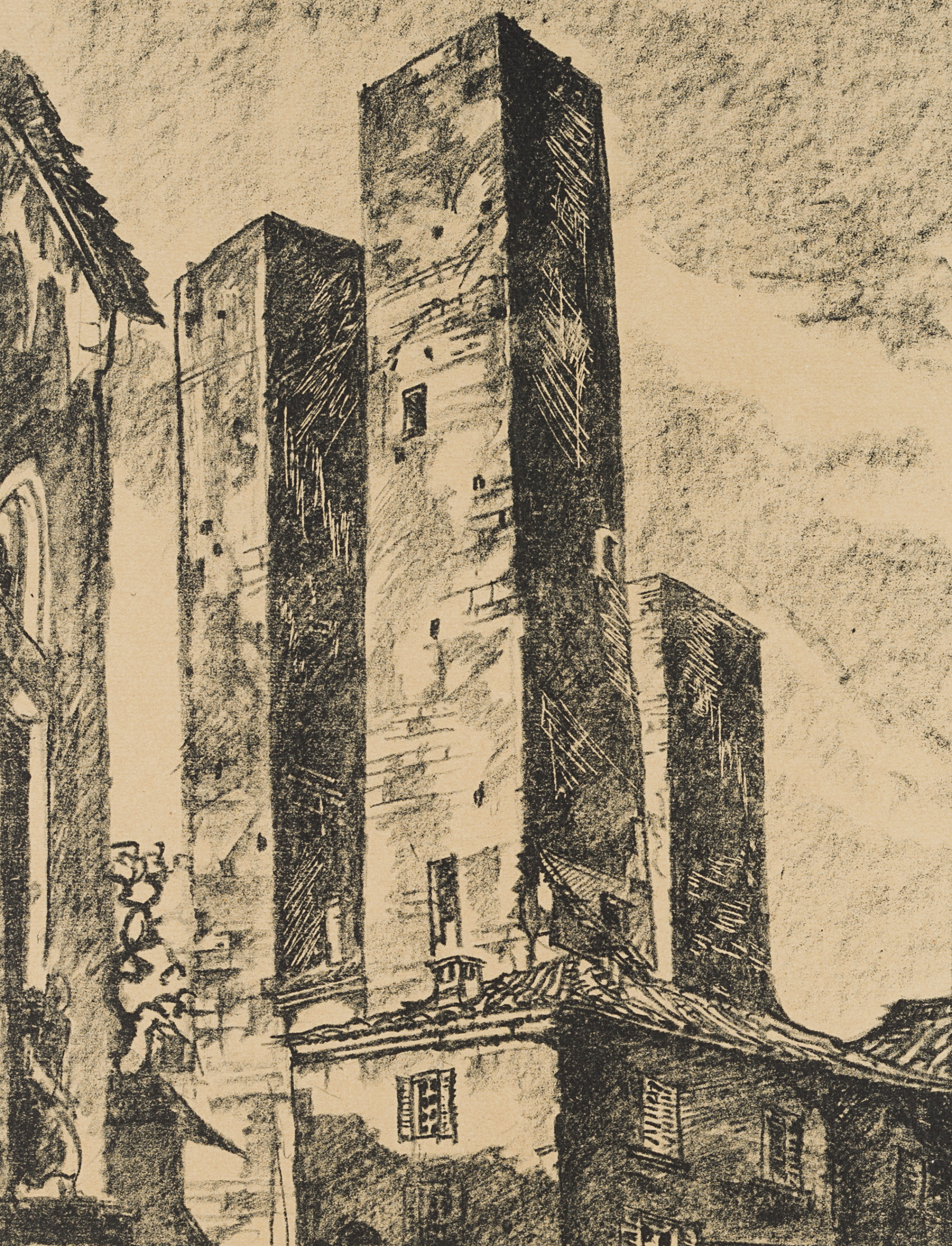 Enders (20th century), San Gimignano with gender towers, c. 1960, Lithography