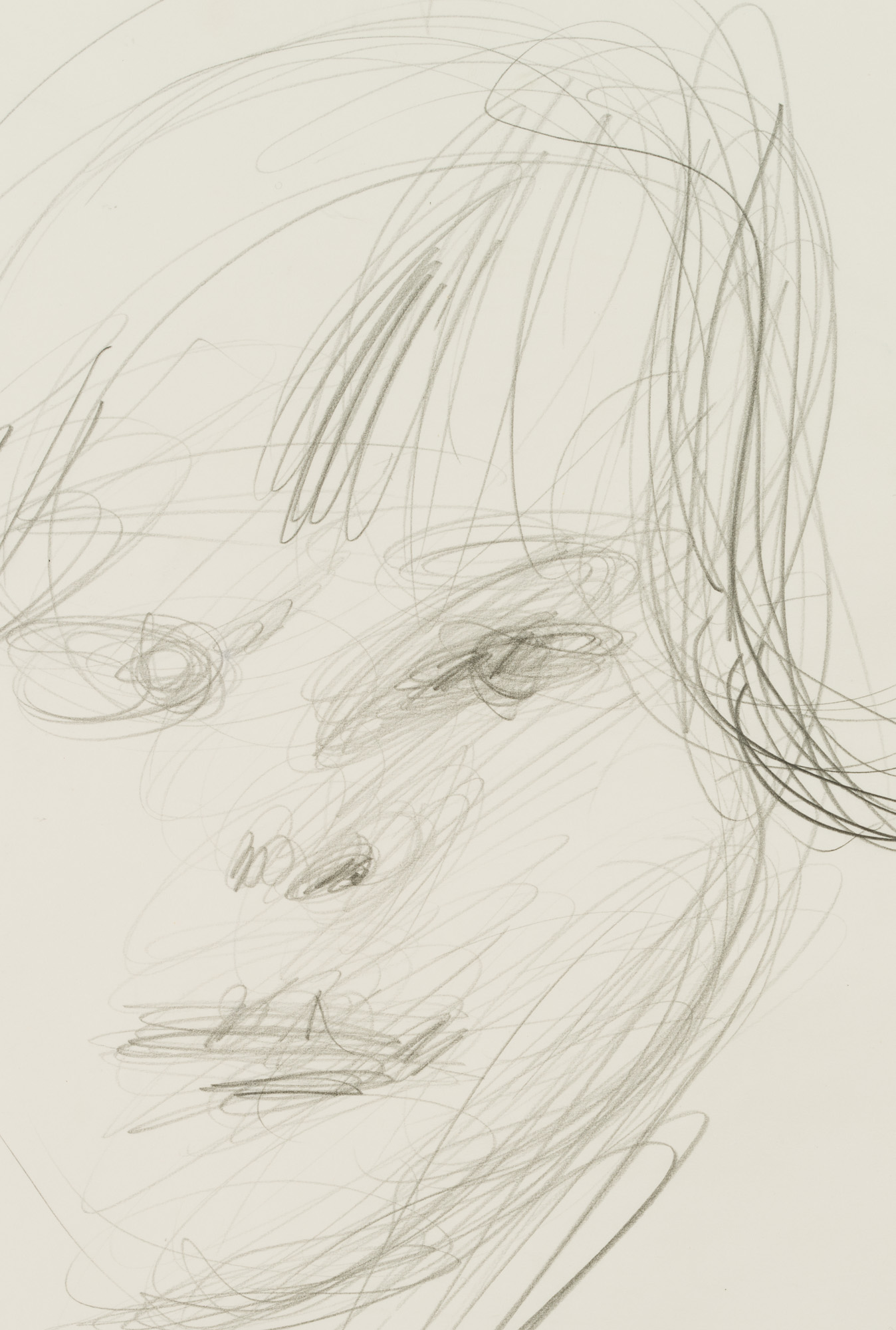 - Description: The drawing of the boy is the result of dynamic, loosely drawn pencil strokes.