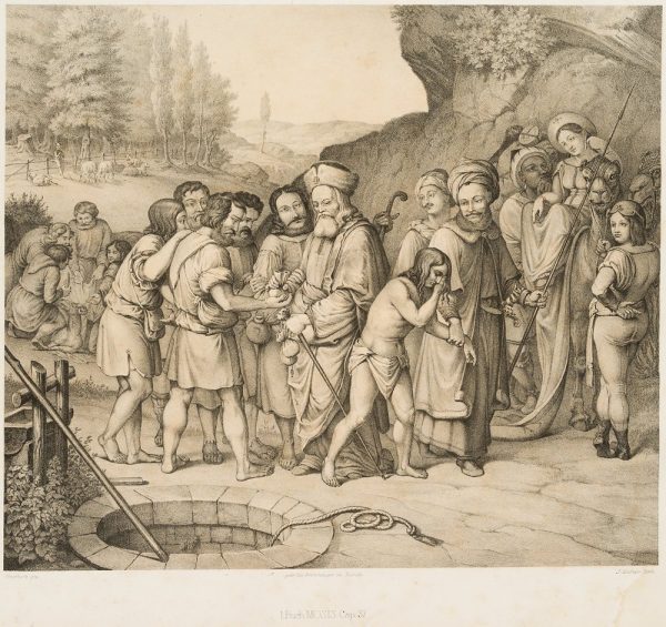 Hans Jakob Escher (19th century) after Friedrich Overbeck (1789 Lübeck – 1869 Rom), Joseph is sold by his brothers to Egypt, c. 1840, Lithography
