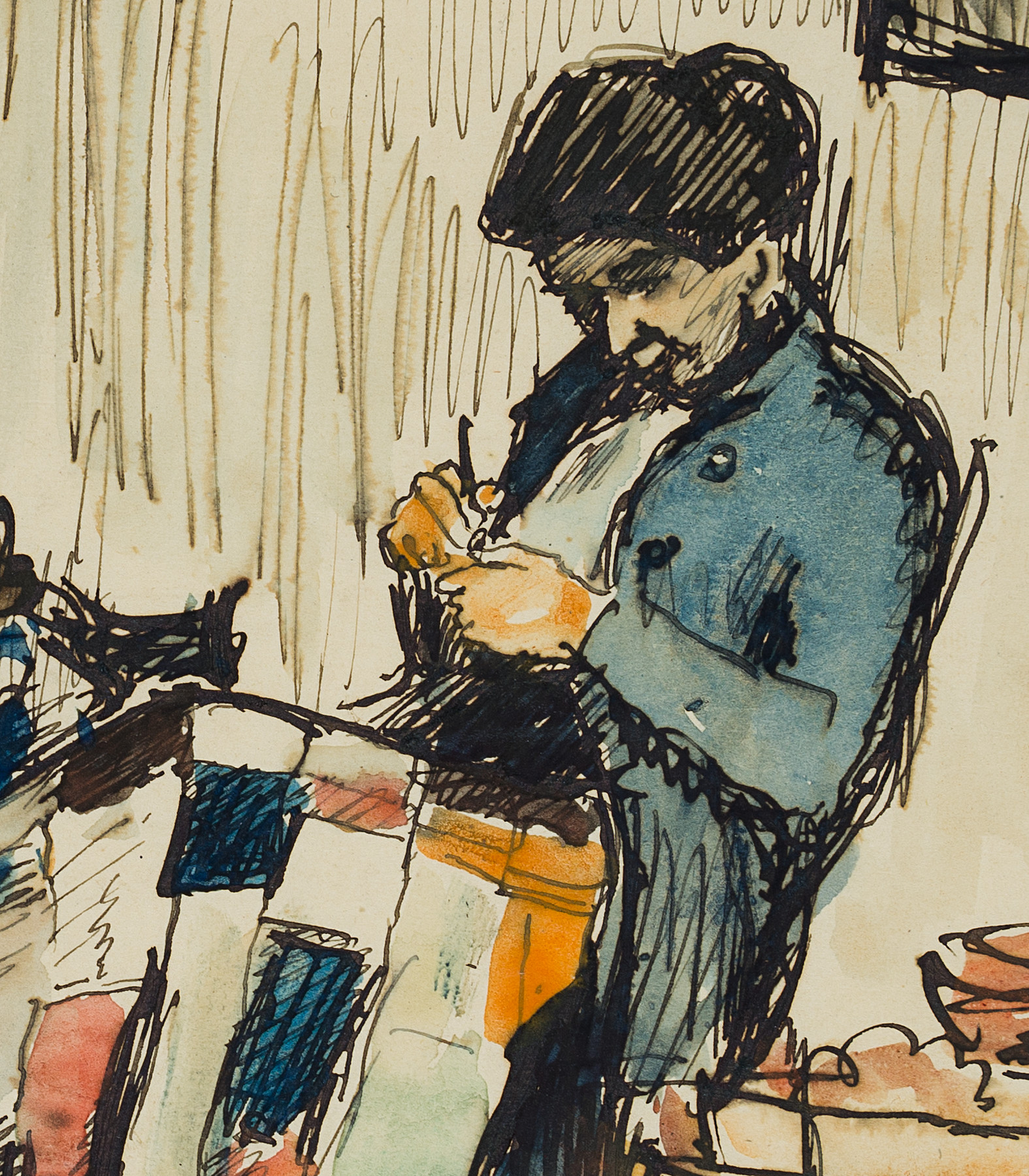 - Technik: Aquarellierte FederzeichnungAquarell auf Papier