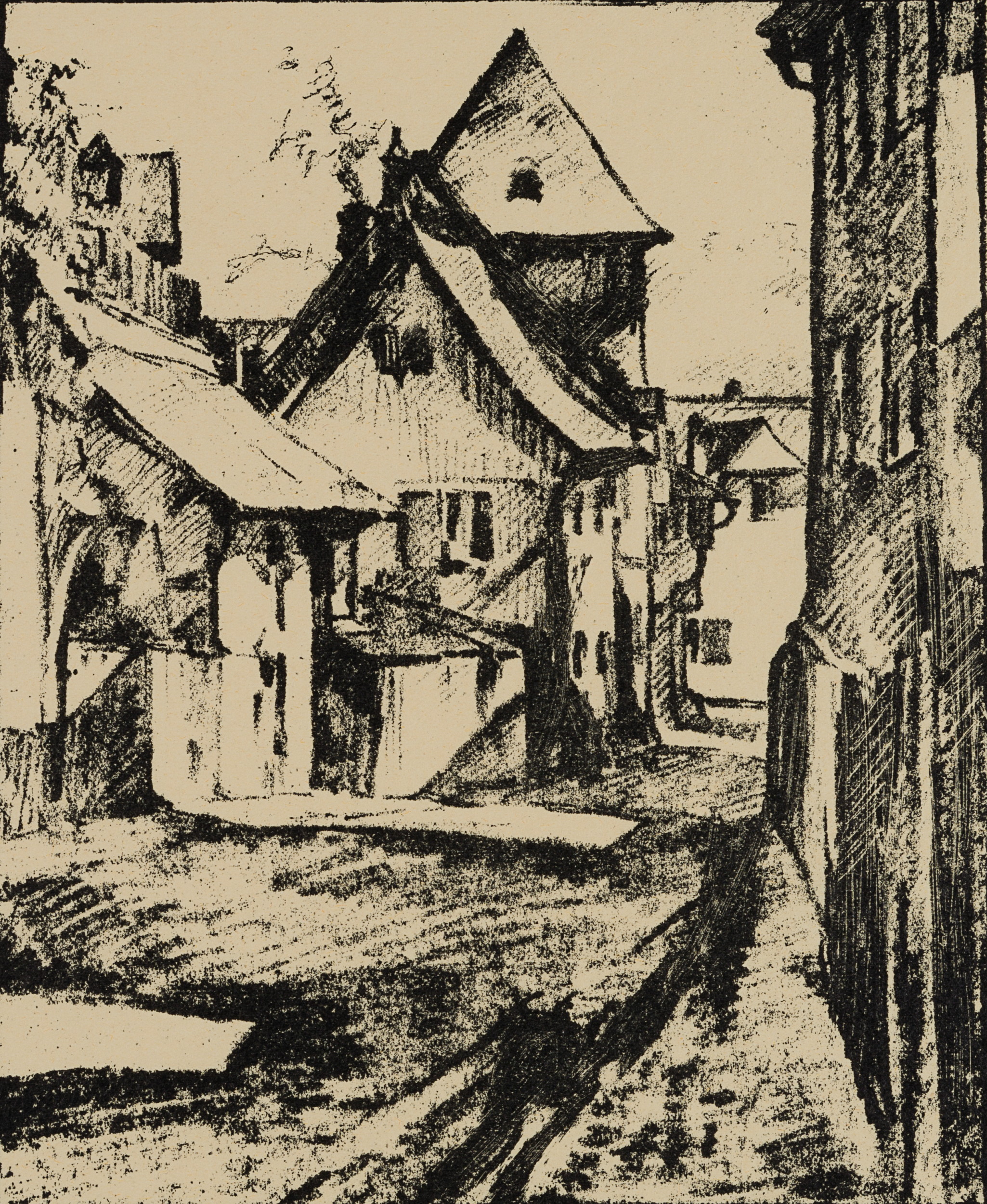 Fritz Best-Cronberg (1894 Cronberg – 1980 ebd.), In den Straßen der Kronberger Altstadt, um 1950, Lithographie