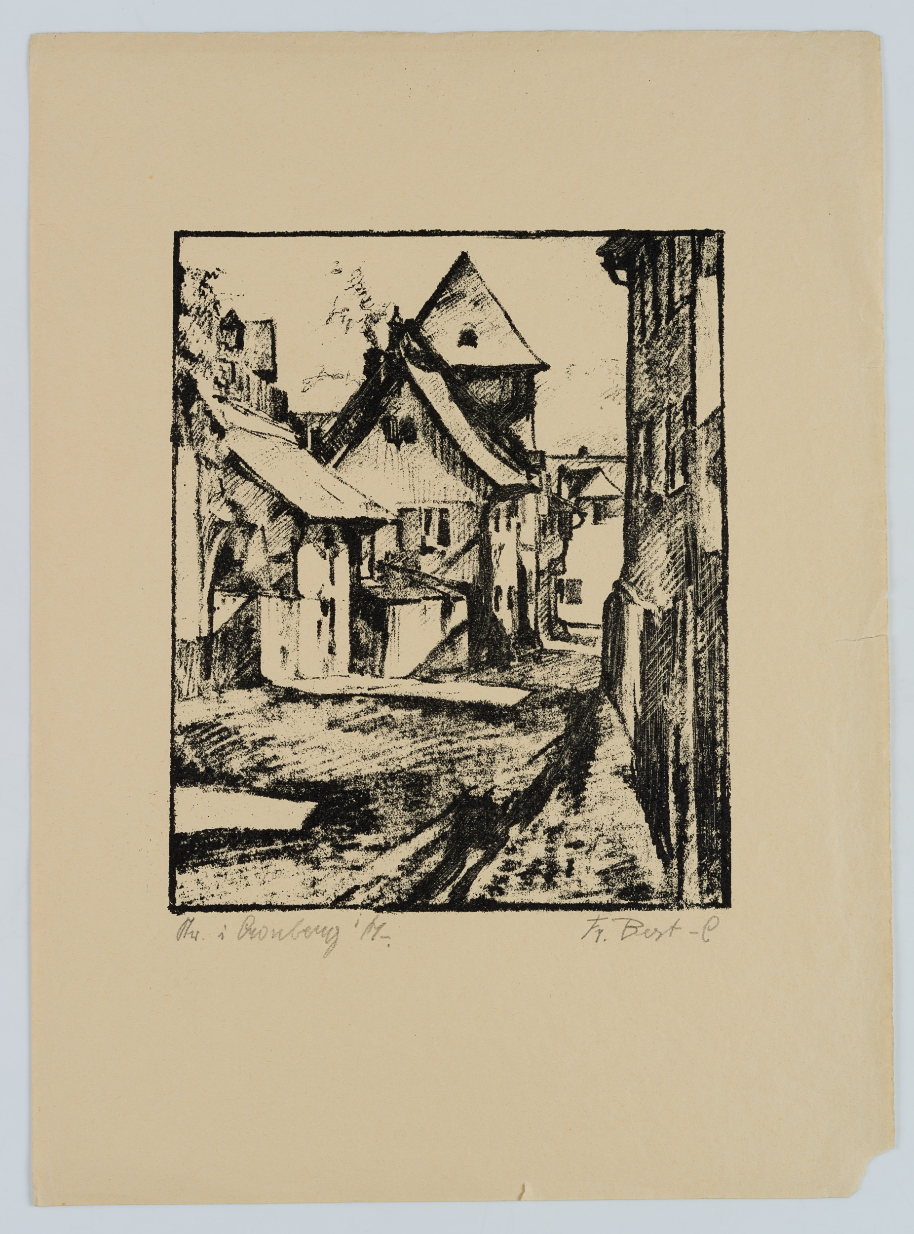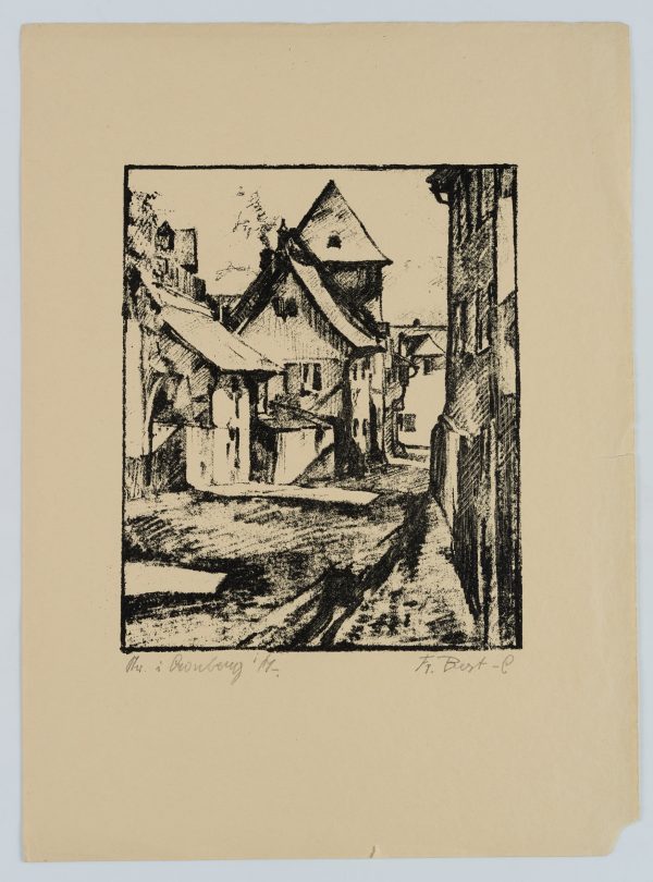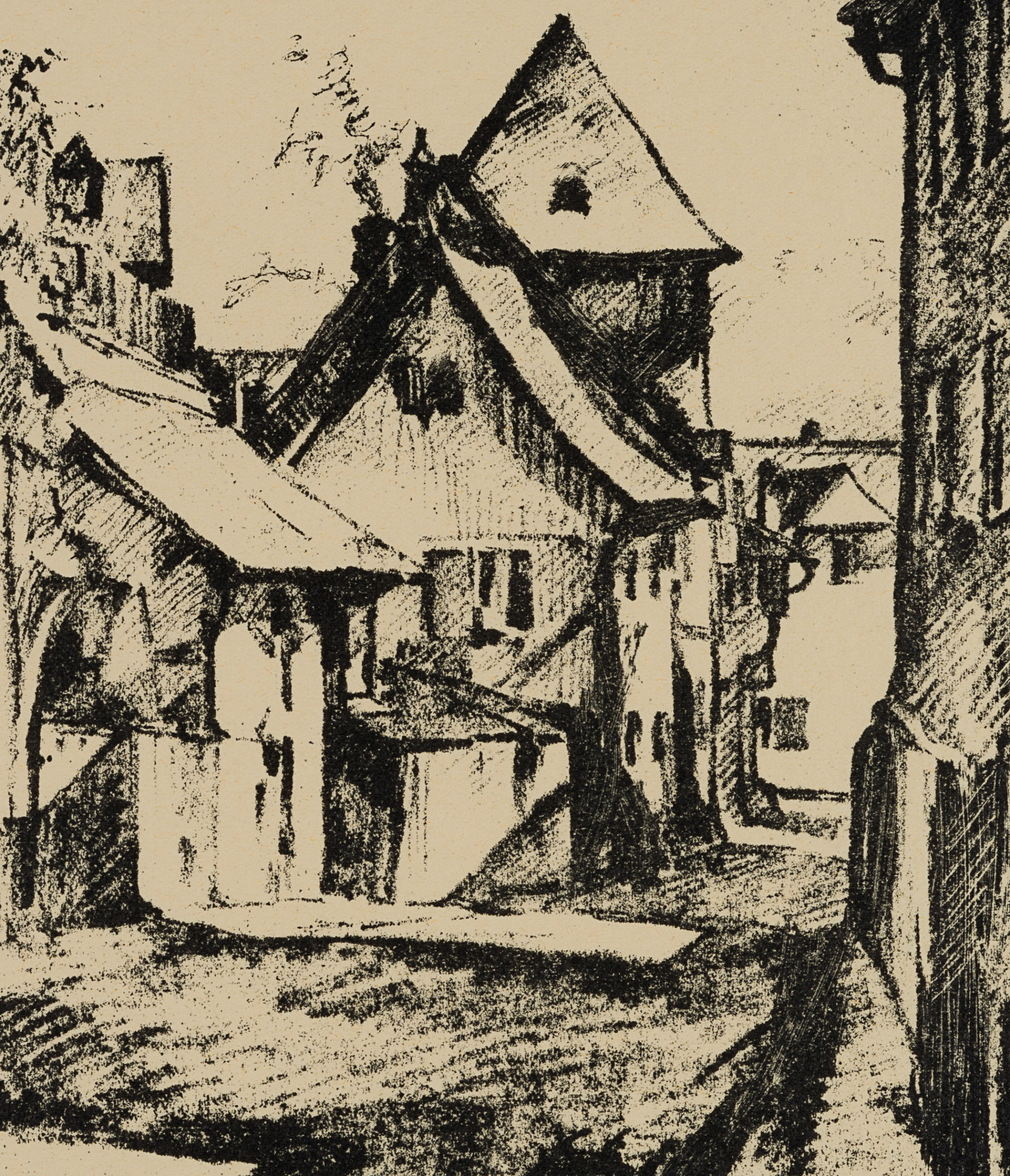 Fritz Best-Cronberg (1894 – 1980 ibid.), In the streets of Kronberg’s old town, c. 1950, Lithography