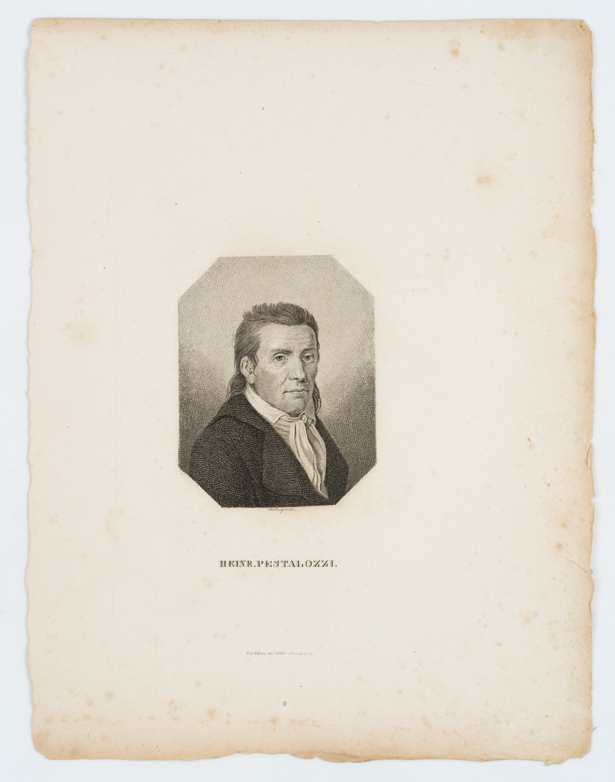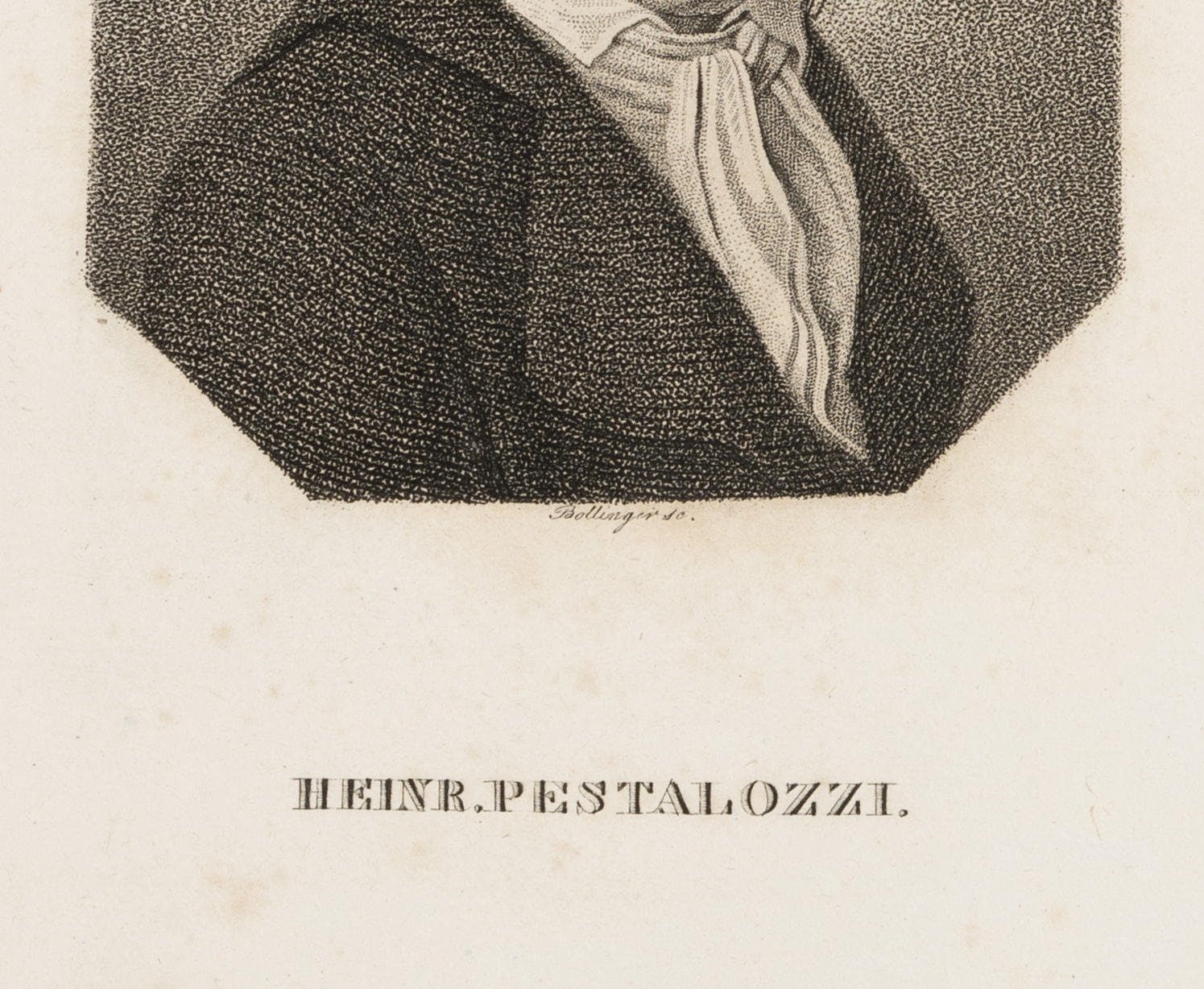 - Bezeichnung: Unten mittig im Druck signiert: “Bollinger sc.”. Unten mittig im Druck bezeichnet: “HEINR. PESTALOZZI.”.
