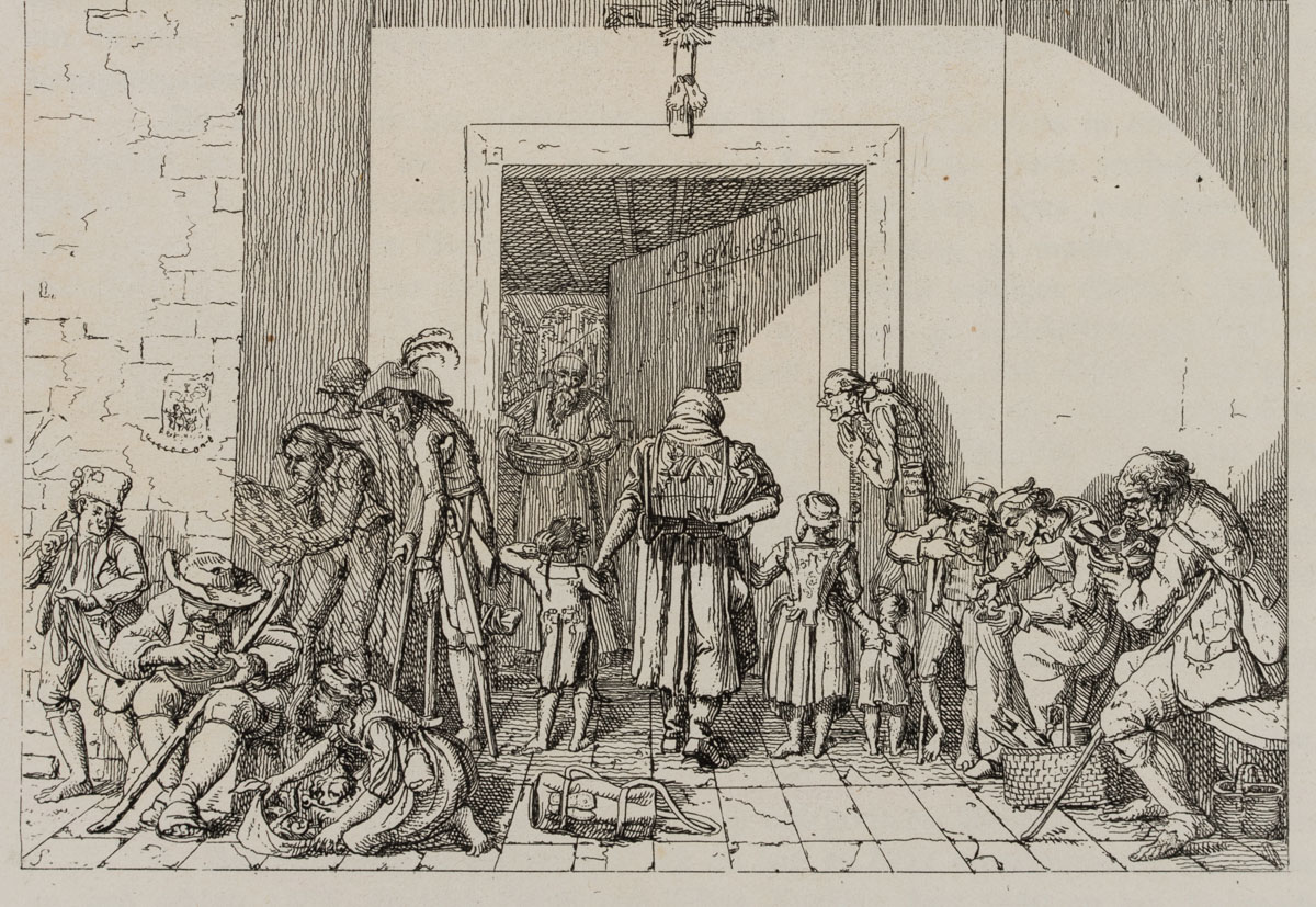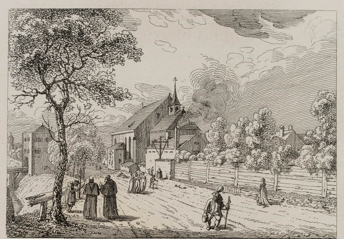 Ferdinand Bollinger (19th century), Old Capuchin Monastery, Munich Views, before 1820, Etching