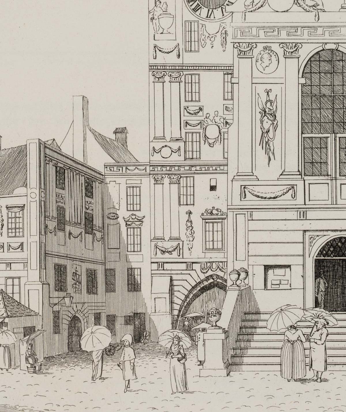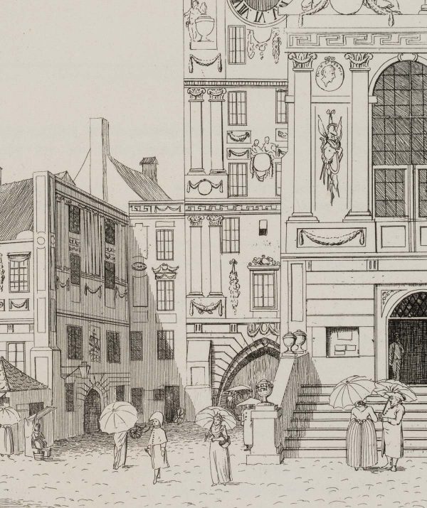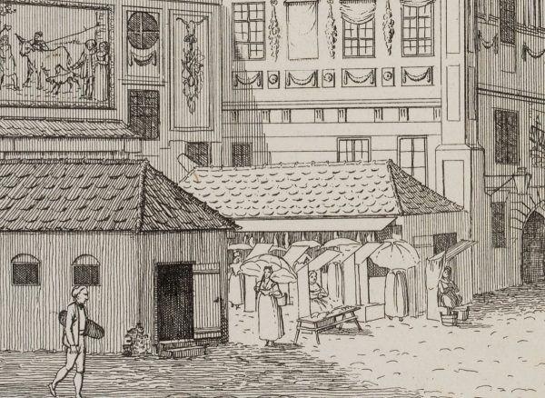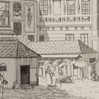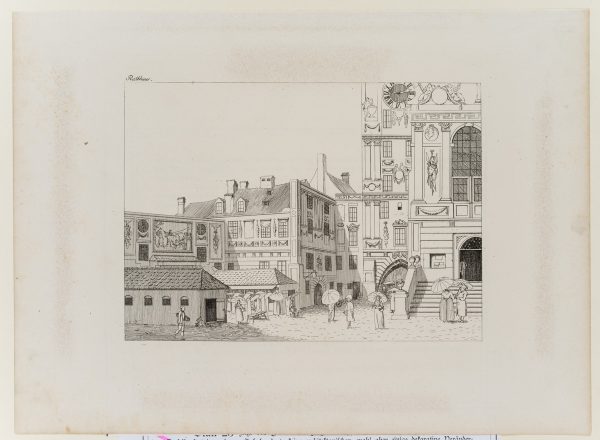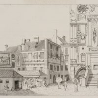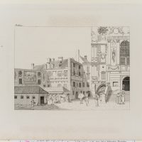 The sheet is one of a series of Munich city views by Bollinger’s hand or under his direction. The artist was active in Bavaria between 1805 and 1820 and is best known for his vedute of Munich with striking architecture and town houses.