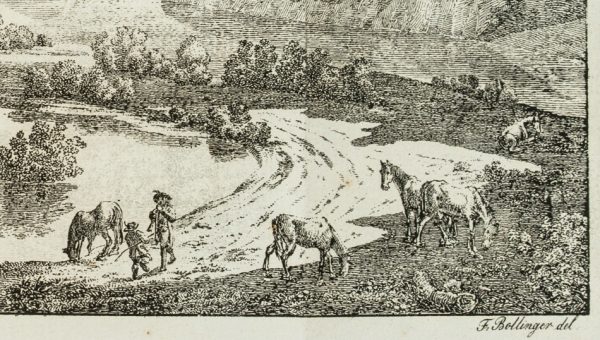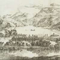 - Inscription: Signed by the artist and inscribed in German below the image in the printing plate: “Ansicht des Grossen Sees von Luc in der Dauphiné. M.”. The print was made by Jospeh Sidler in Munich. Above is the numbering “Tab[ula] 18c”.