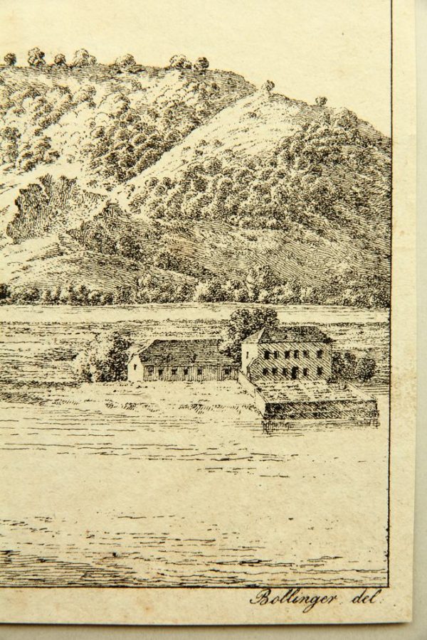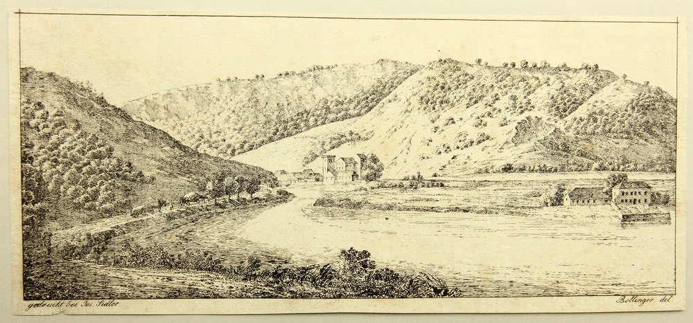 - Beschreibung: Ferdinand BOLLINGER (19. Jahrhundert, München), Landschaftsbild, Clairval am Doubs, Ortschaft in malerischem Flusstal, Federlithographie. Beschreibung: Lithographie auf Papier. Unterhalb der Darstellung im Stein signiert. Druck bei Jos. Sidler.