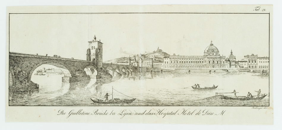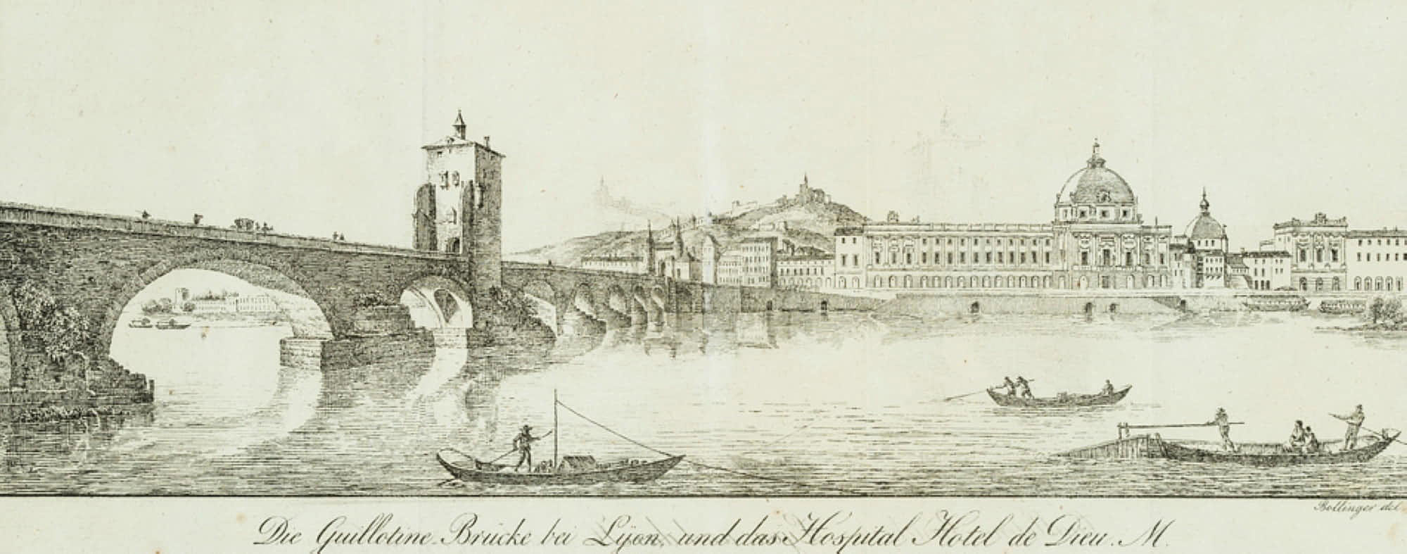 Ferdinand Bollinger (19. Jahrhundert), Guillotine Brücke u. Hospital bei Lyon, 19. Jahrhundert, Lithographie