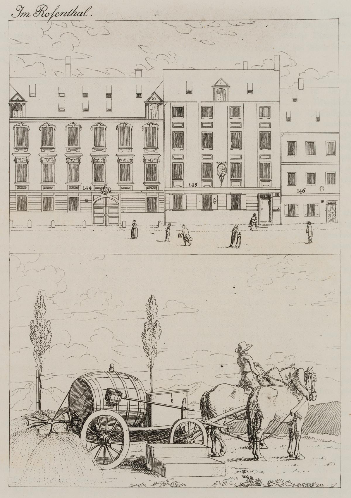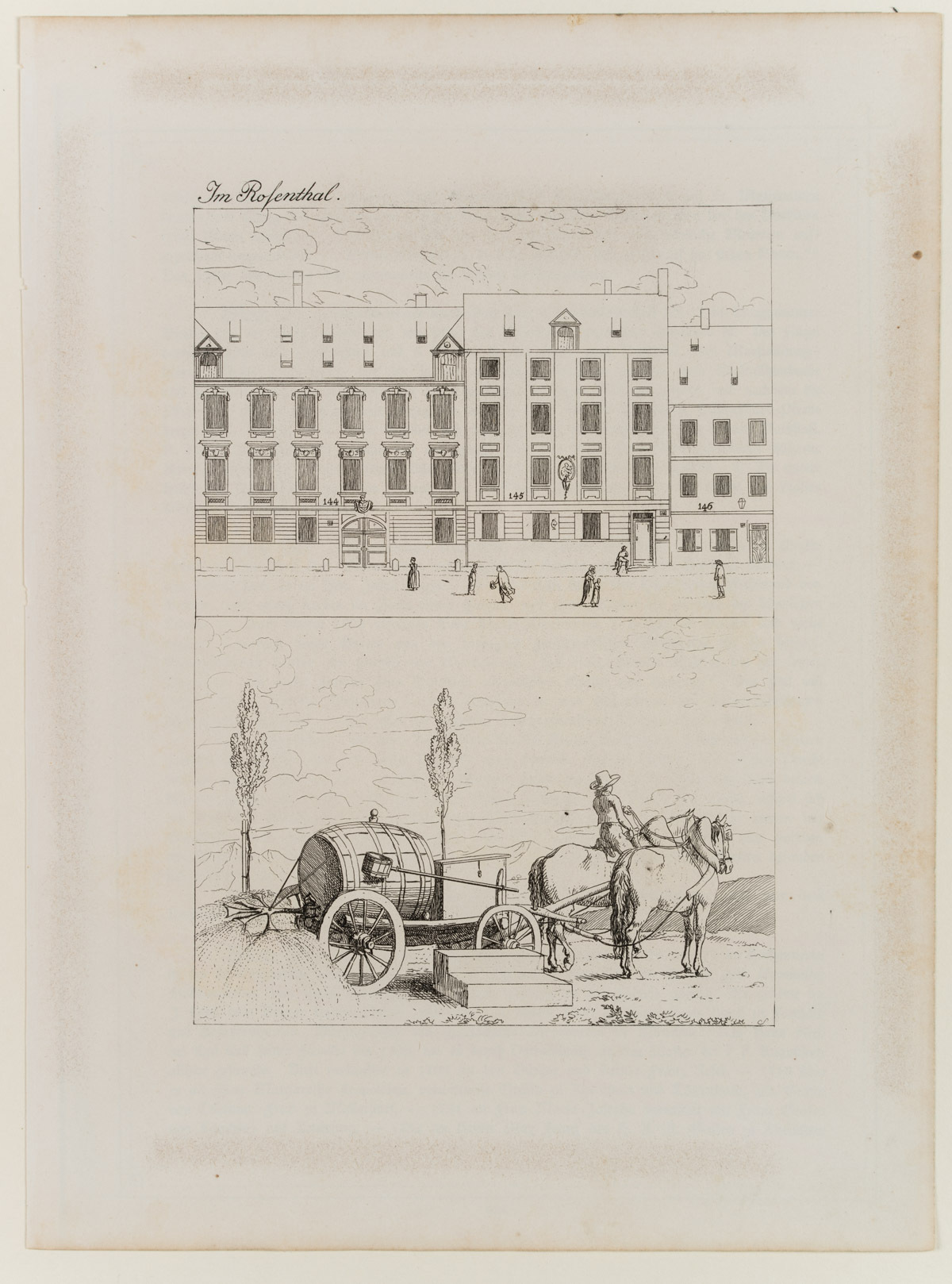 Ferdinand Bollinger (19th century), Houses in Rosenthal (2), Munich views, before 1820, Etching