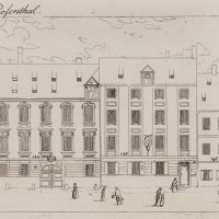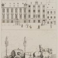 The sheet is one of a series of Munich city views by Bollinger’s hand or under his direction. The artist was active in Bavaria between 1805 and 1820 and is best known for his vedute of Munich with striking architecture and town houses.