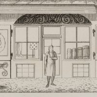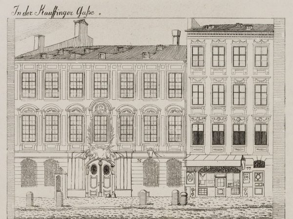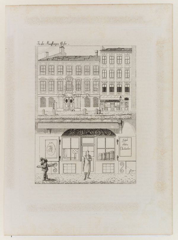 The sheet is one of a series of Munich city views by Bollinger’s hand or under his direction. The artist was active in Bavaria between 1805 and 1820 and is best known for his vedute of Munich with striking architecture and town houses.