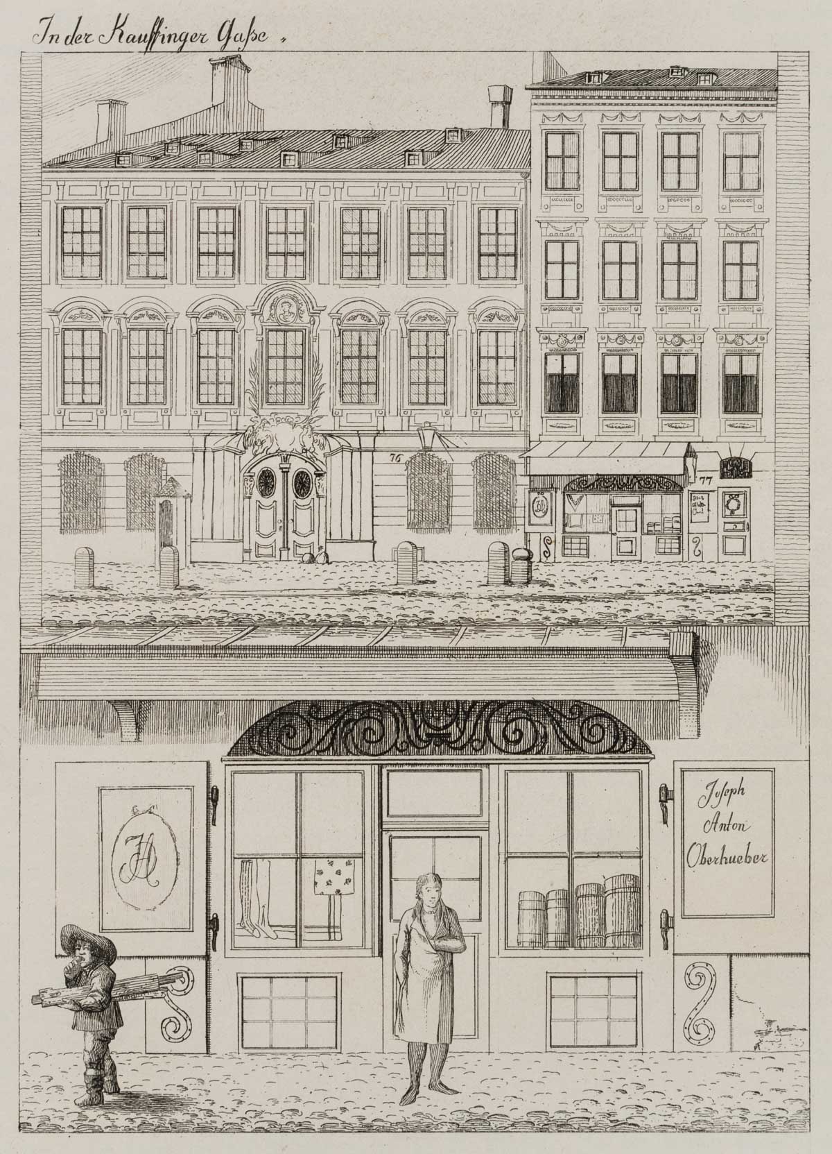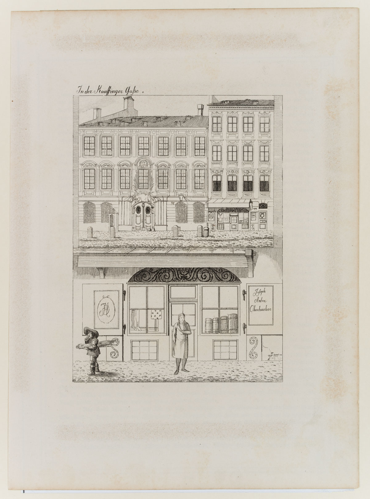Ferdinand Bollinger (19th century), Houses in Kaufinger Straße, Munich views, before 1820, Etching