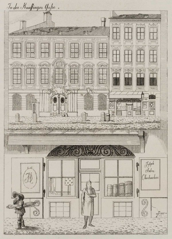 Ferdinand Bollinger (19. Jahrhundert), Häuser in der Kaufinger Straße, Münchner Ansichten, vor 1820, Radierung