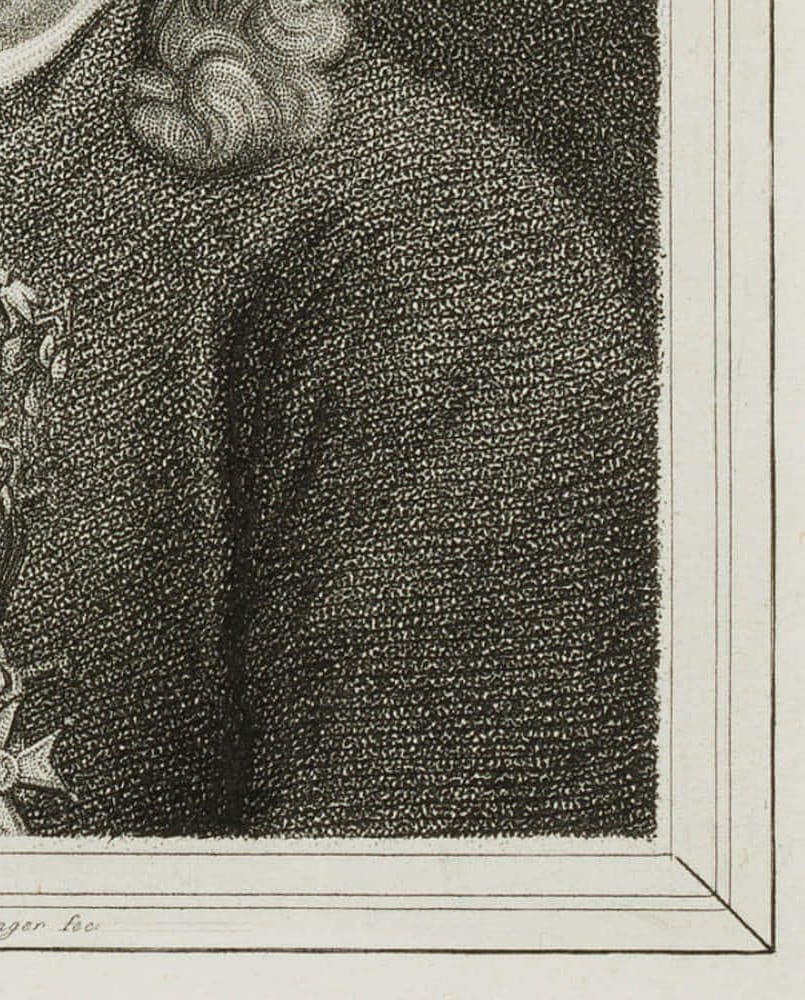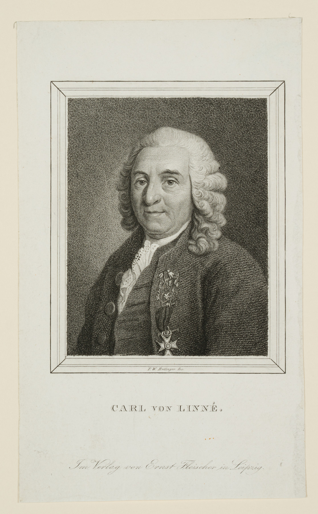 - Beschreibung: Der Stich nach einem Porträt Carl von Linnés (1707-1778) wenige Jahre vor dessen Tod, zeigt den schwedischen Naturforscher, der die binäre Nomenklatur für Botanik und Zoologie schuf. Der mit Blumen versehene Kreuzorden am Band verweist sowohl auf seinen 1756 errungenen Adelsrang als auch auf sein Wirken als Botaniker.