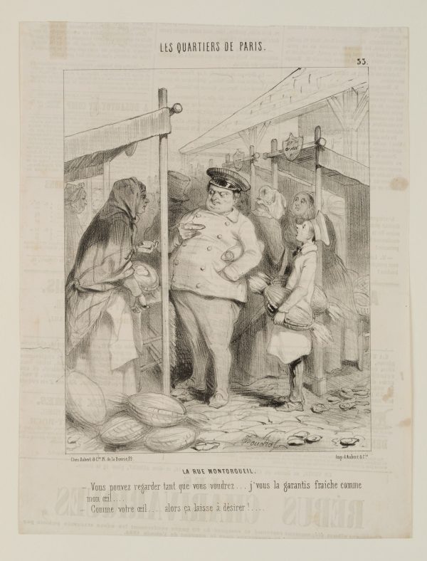 - Keywords: LES QUARTIERS DE PARIS, RUE NONTORGUEUL, Austern, Markt, 19th century, Modern, Caricature, France,