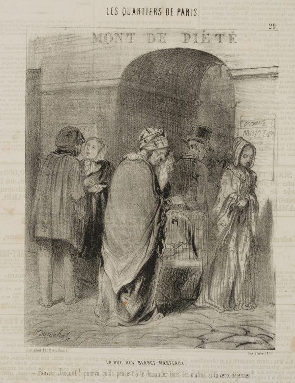 - Keywords: LES QUARTIERS DE PARIS, RUE DES BLANCS-MANTEAUX, Pfandhaus, Kakadu, 19th century, Modern, Caricature, France,