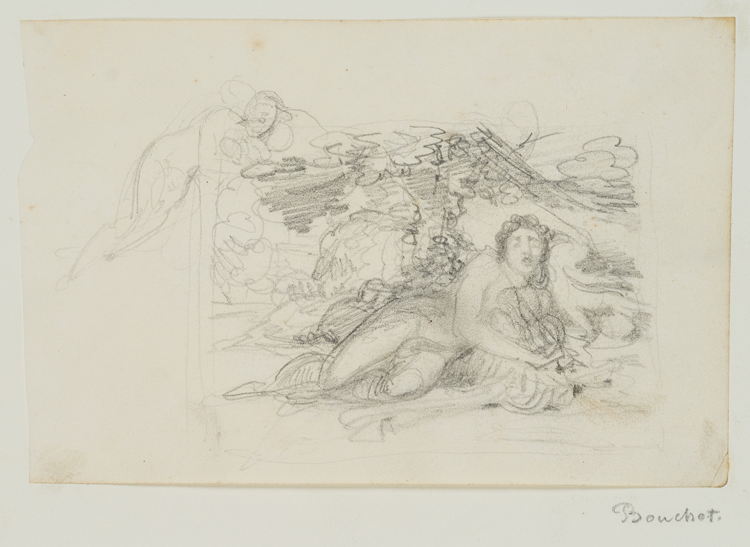F. BOUCHOT (1800-1842) zug., Mythologische Szene, Schlafende, Bleistift