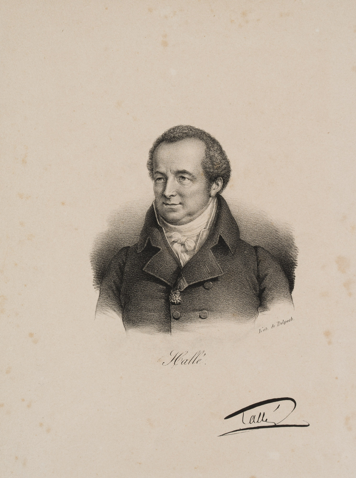 - Bezeichnung: Rechts unten mit faksimilierter Unterschrift. Charles Hallé war ein französischer Arzt, Hygieniker und Epidemiologe. François Séraphin Delpech (1778 – 1825) war franz. Lithograph und Schriftsteller.