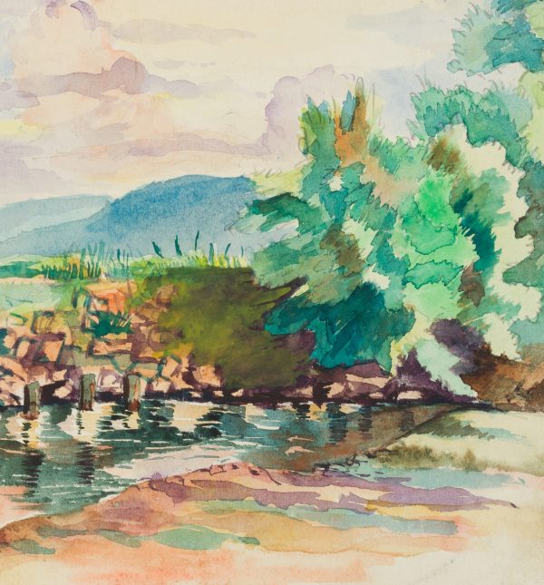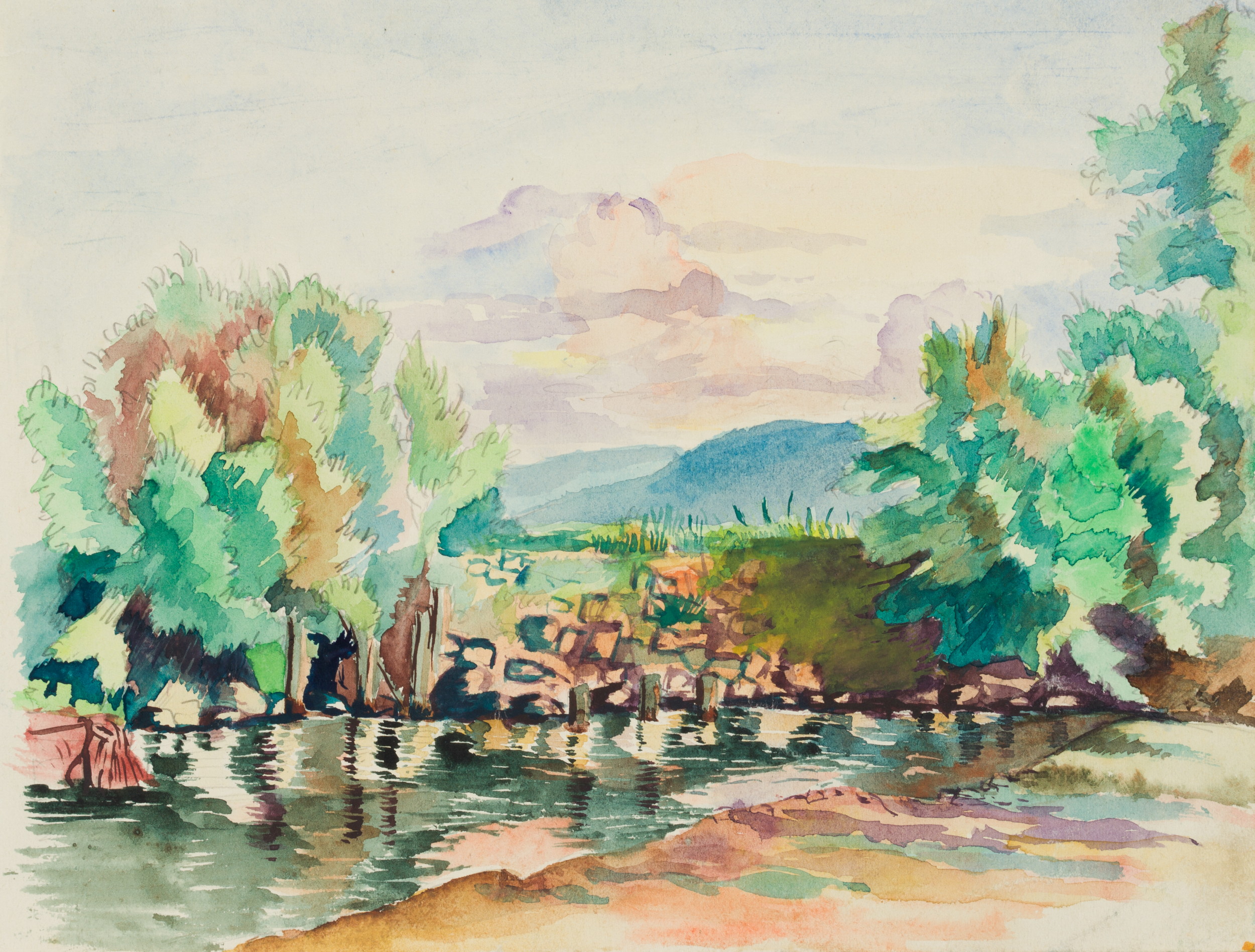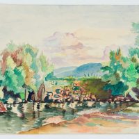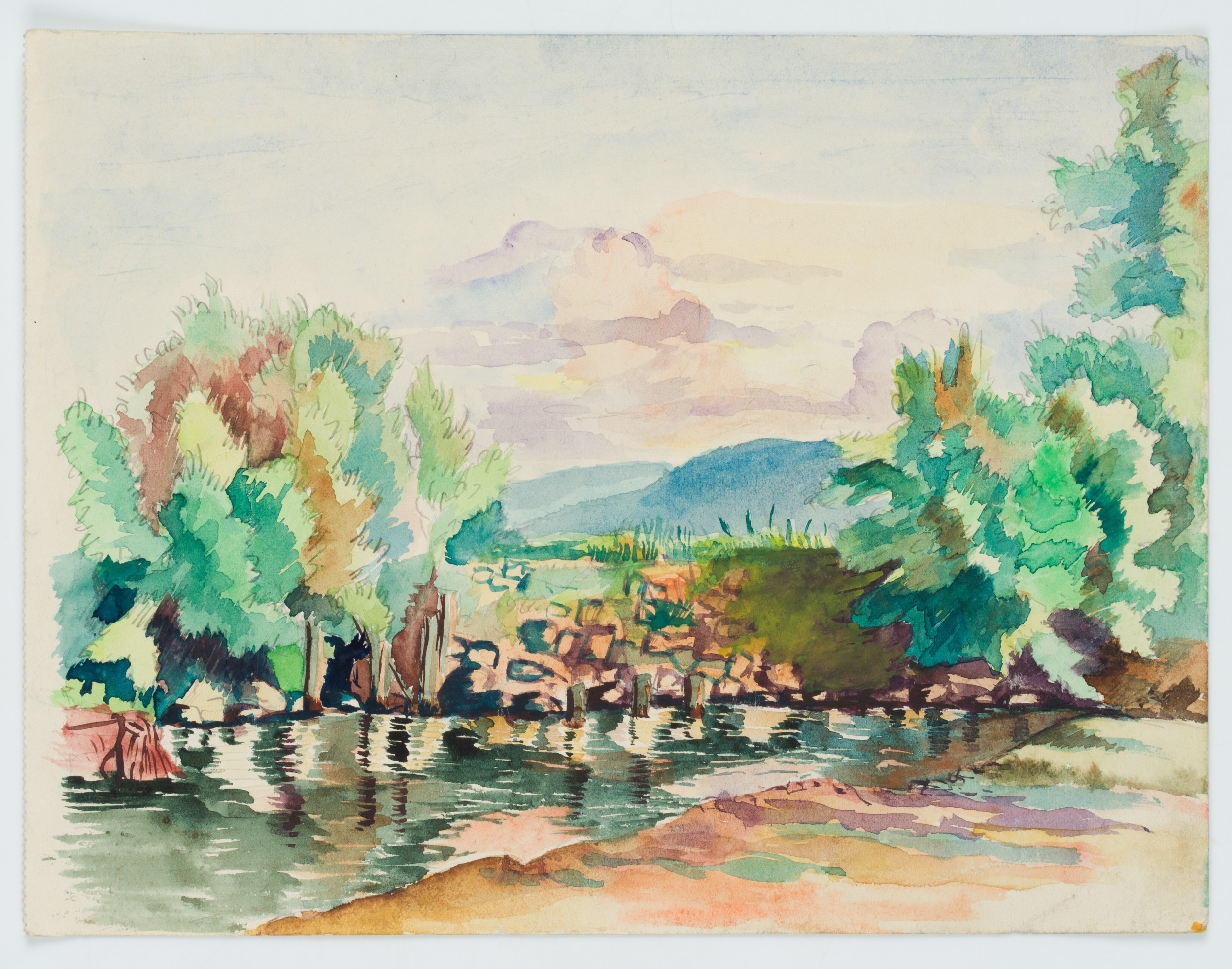 Frieda Fodor Imling (born 1928 Petrila), Romanian Landscape, 1942, Watercolor