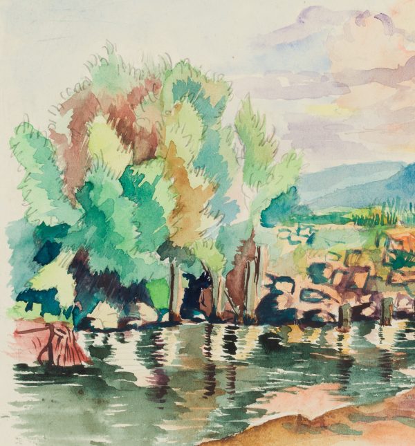 Frieda Fodor Imling (*1928 Petrila), Rumänische Landschaft, 1942, Aquarell