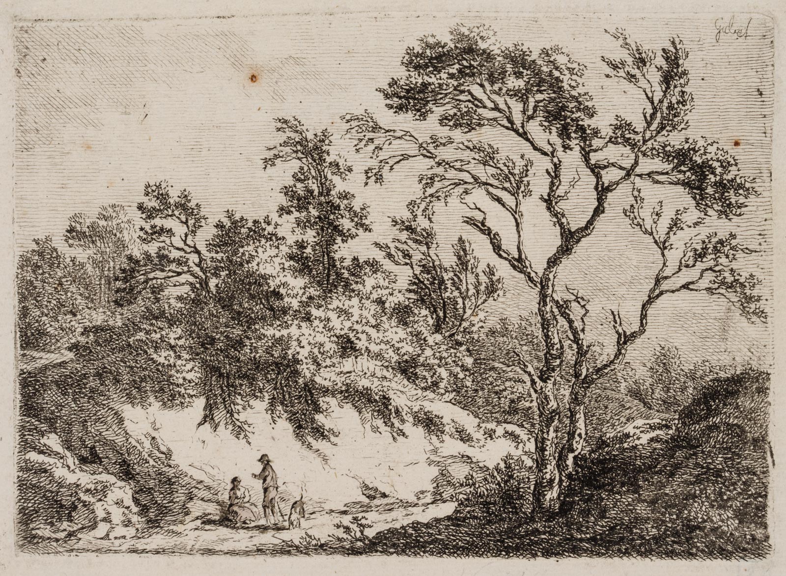 F. GABET (1765-1847), Jäger und Magd am Waldrand, um 1800, Radierung Realismus