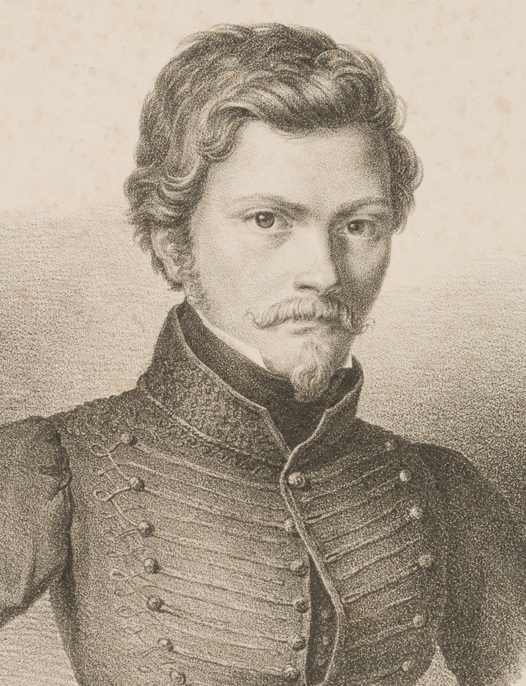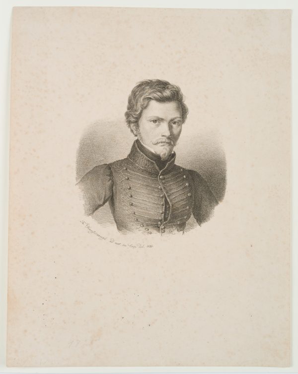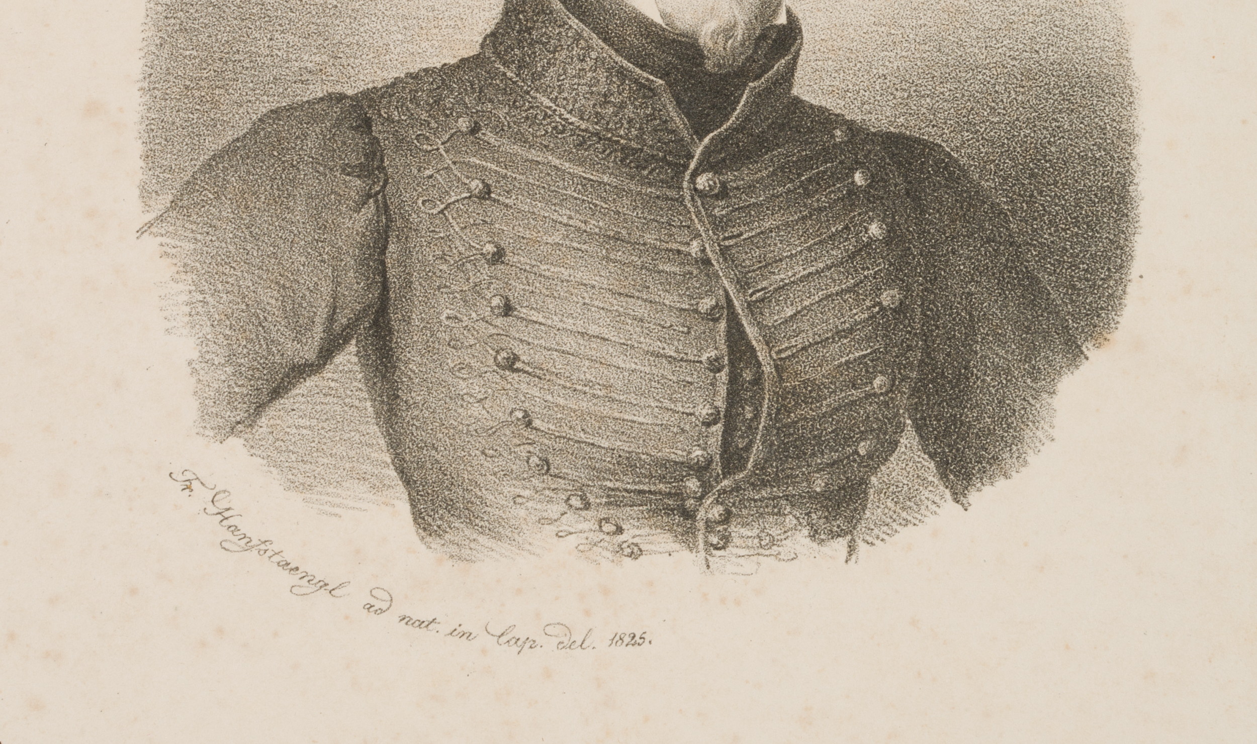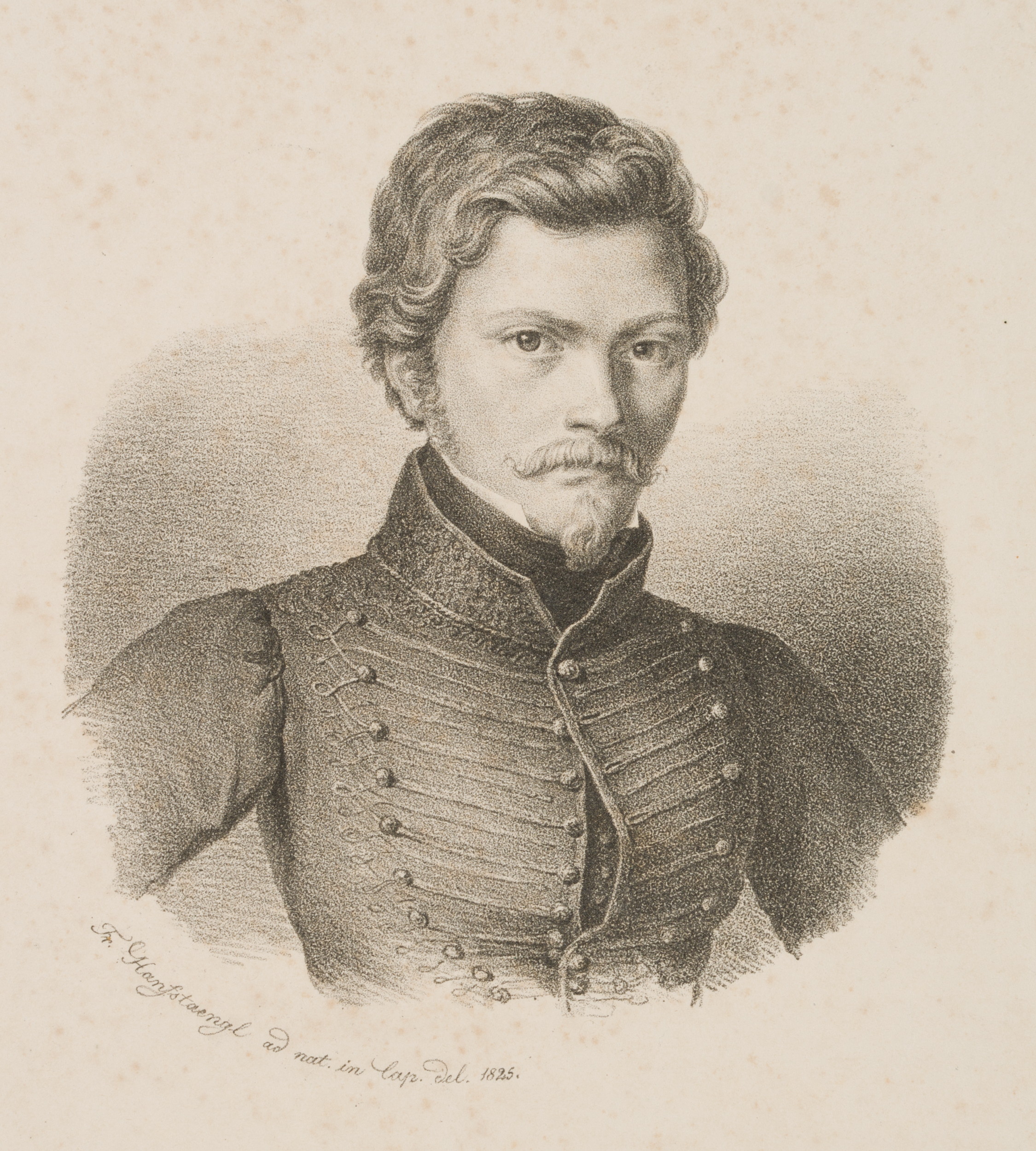 Franz Seraph von Hanfstaengl (1804 Baiernrain – 1877 Munich), Chest portrait of a young man in uniform jacket, c. 1825, Lithography