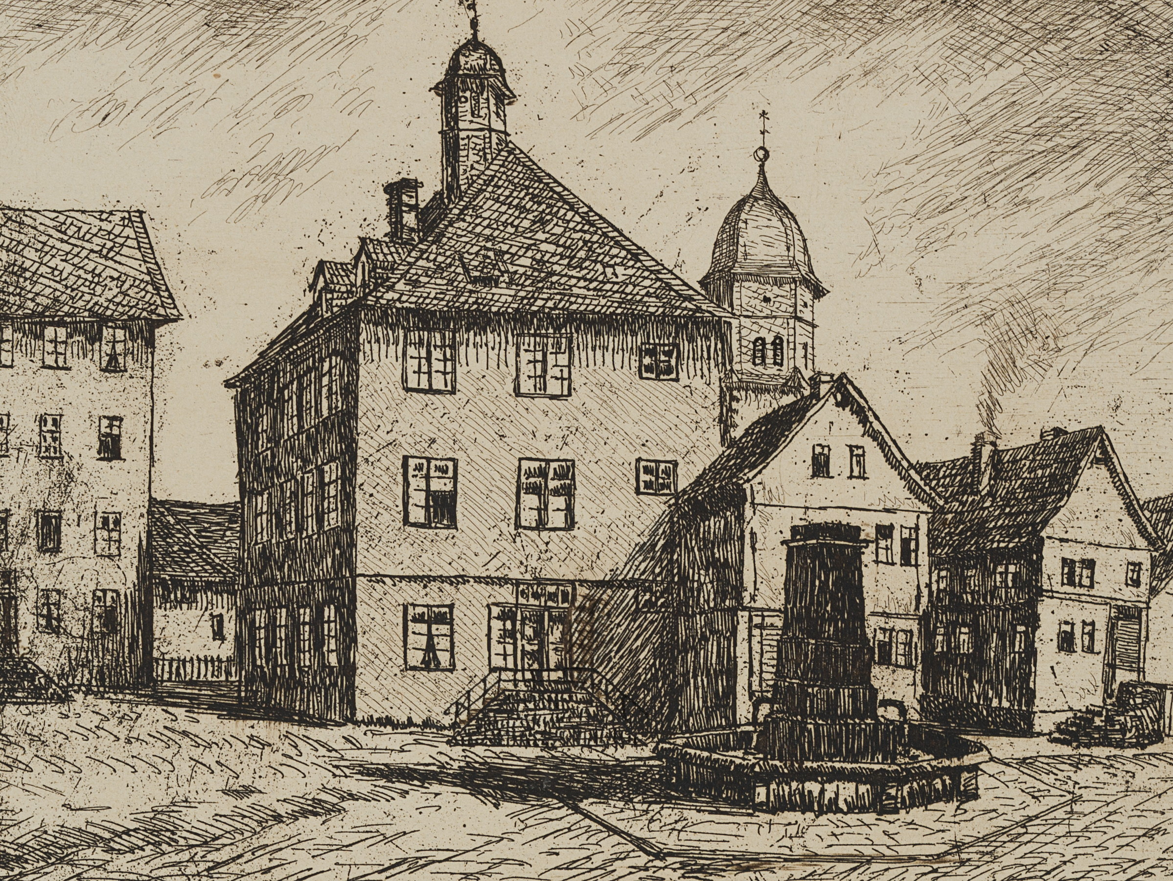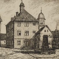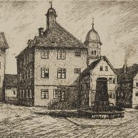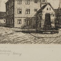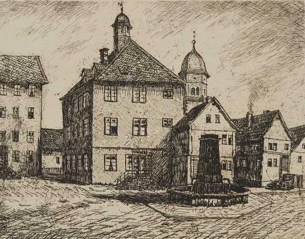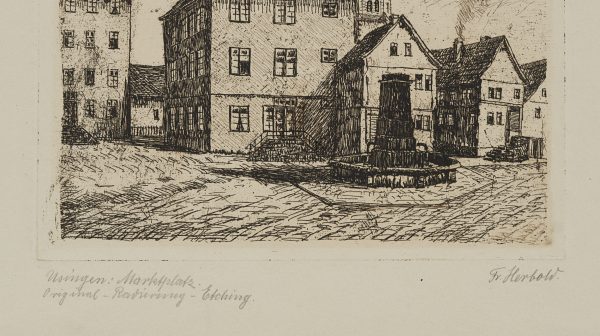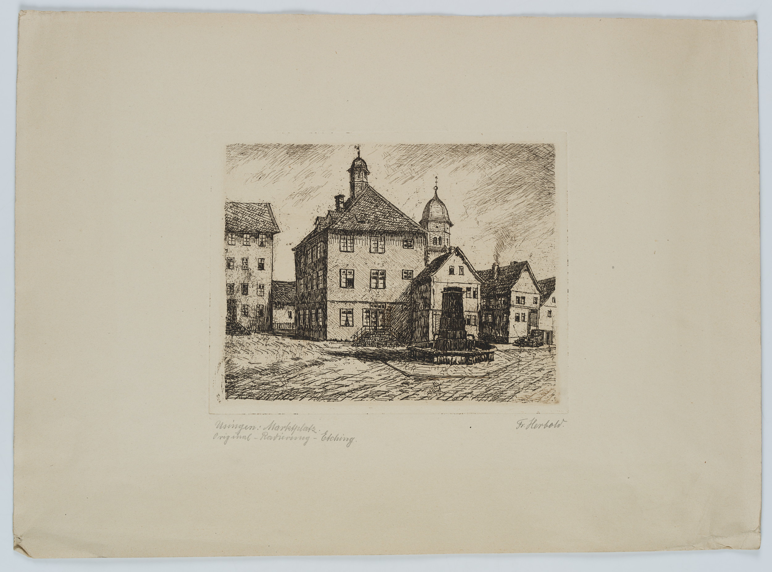 - Inscription: Lower right signed: “Fr. Herbold”. lower left inscribed by the artist’s hand: “Usingen : Marktplatz Original-Radierung – Etching”.